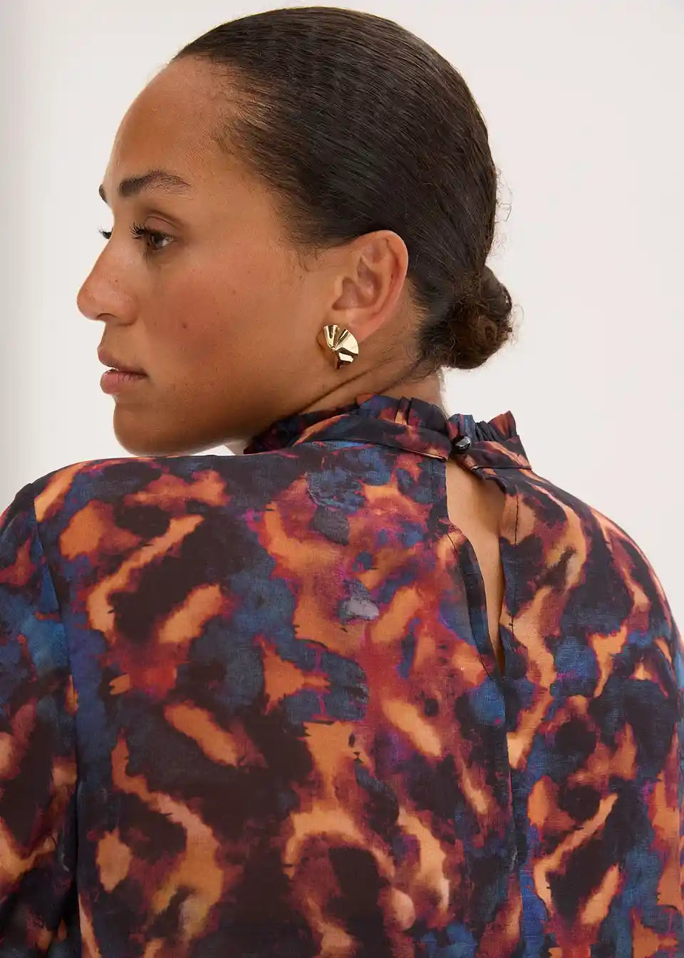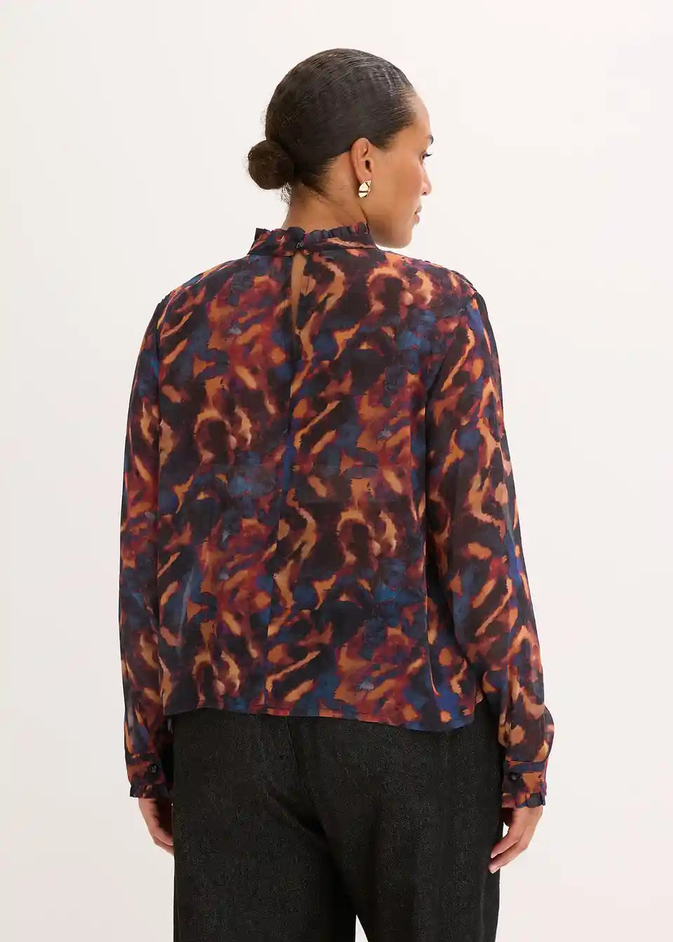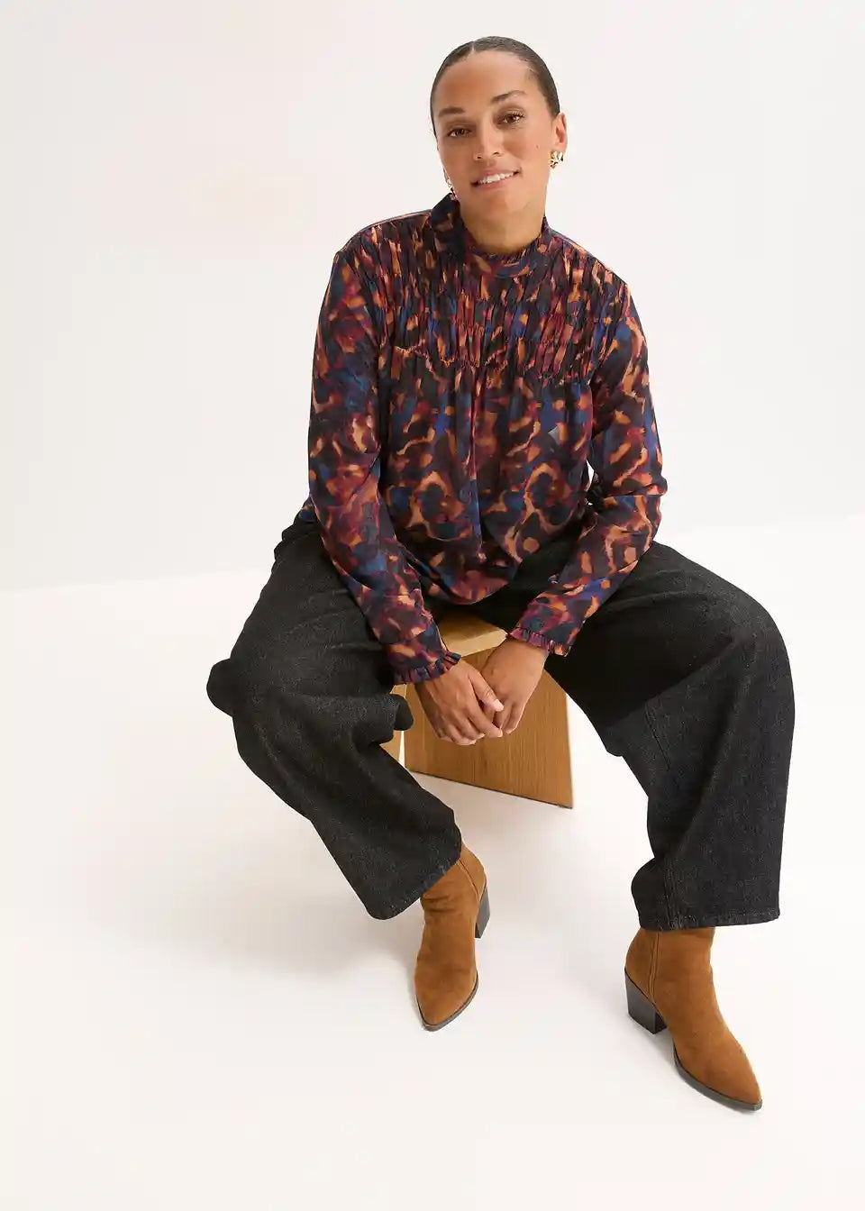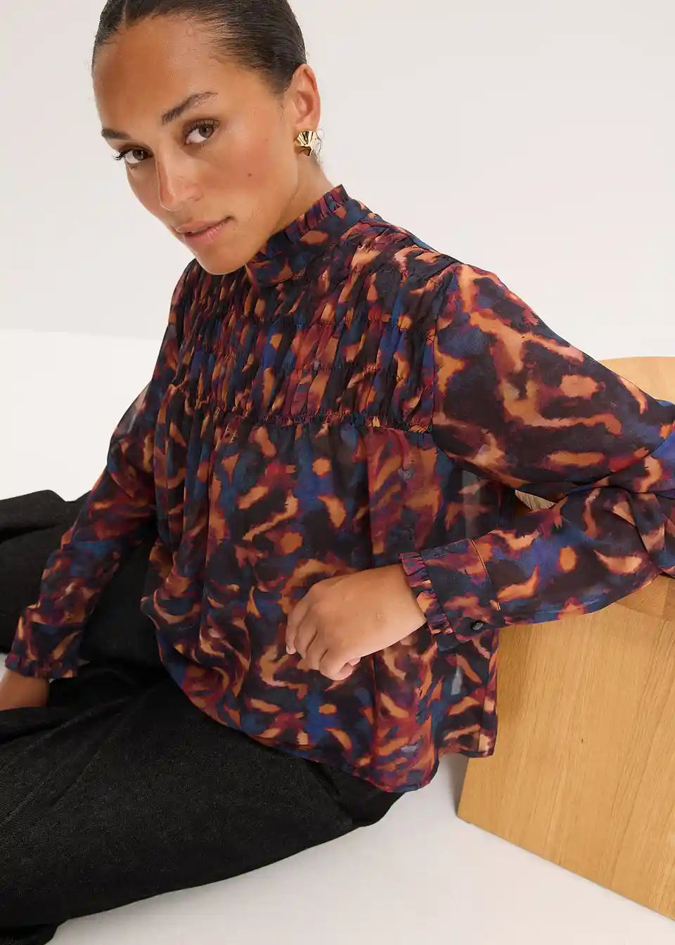 modisch bedruckte Chiffonbluse mit Smok-Detail vorne
