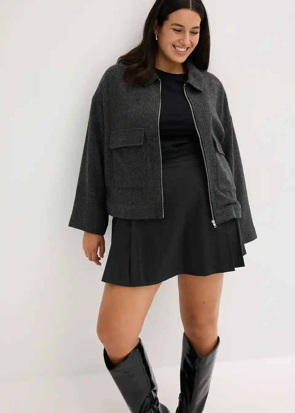 Jacke mit aufgesetzten Taschen und Reißverschluss