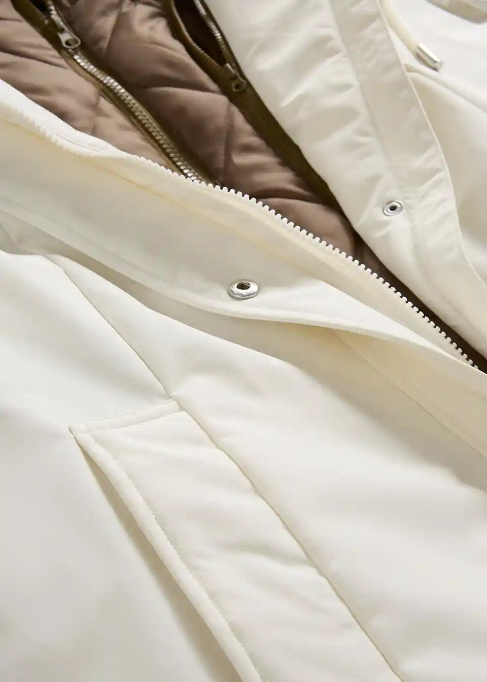 Material:Obermaterial: 52% Polyester (recycelt), 48% Polyester, Futter: 100% Polyester, Kapuzenfutter: 100% Polyester, Füllmaterial: 100% Polyester, Einsatz: 100% Polyester, Taschenfutter: 94% Polyester, 6% Elasthan