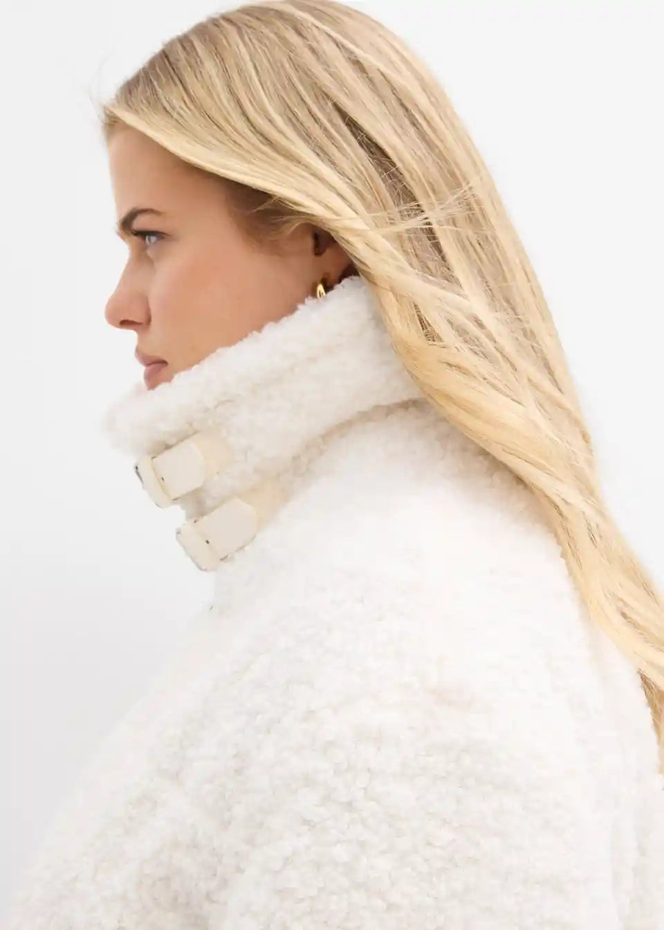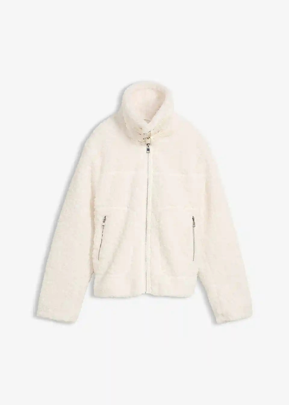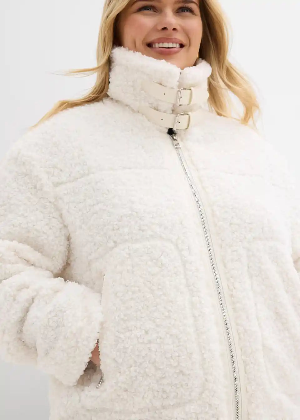 Modische Fellimitat-Jacke aus Teddyfleece und seitlichen Taschen