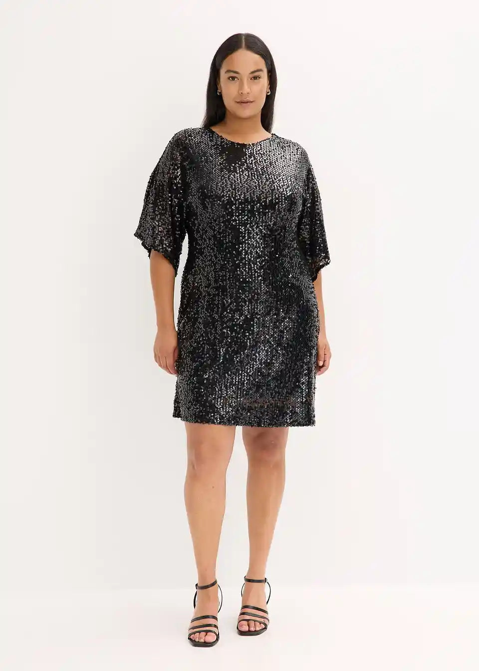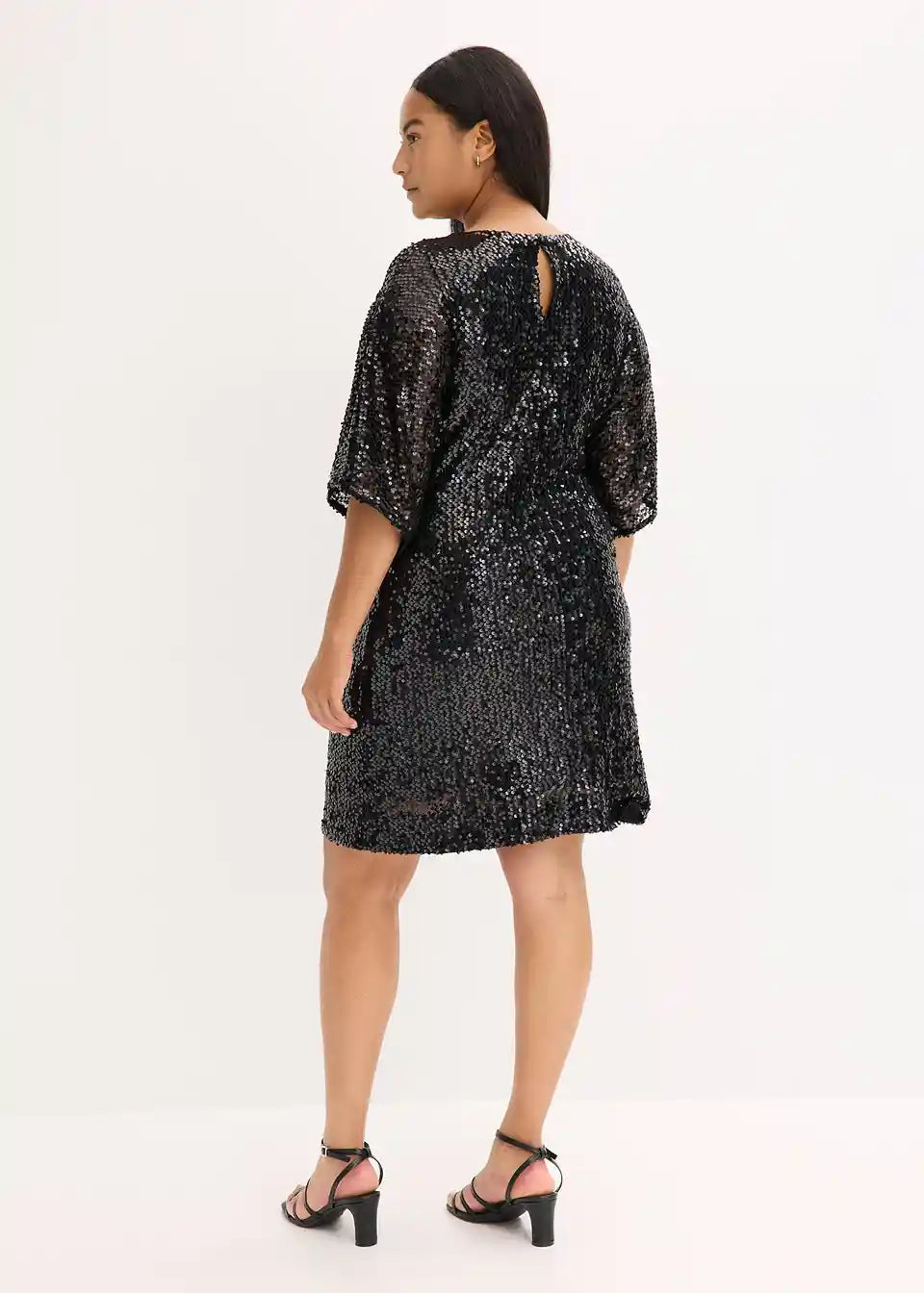 Modern und feminin: Oversized Minikleid mit Pailletten und Kimono-Ärmel