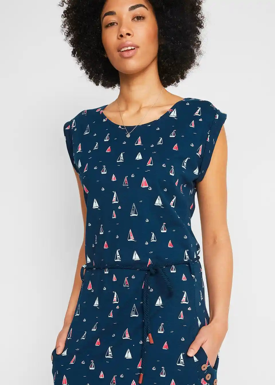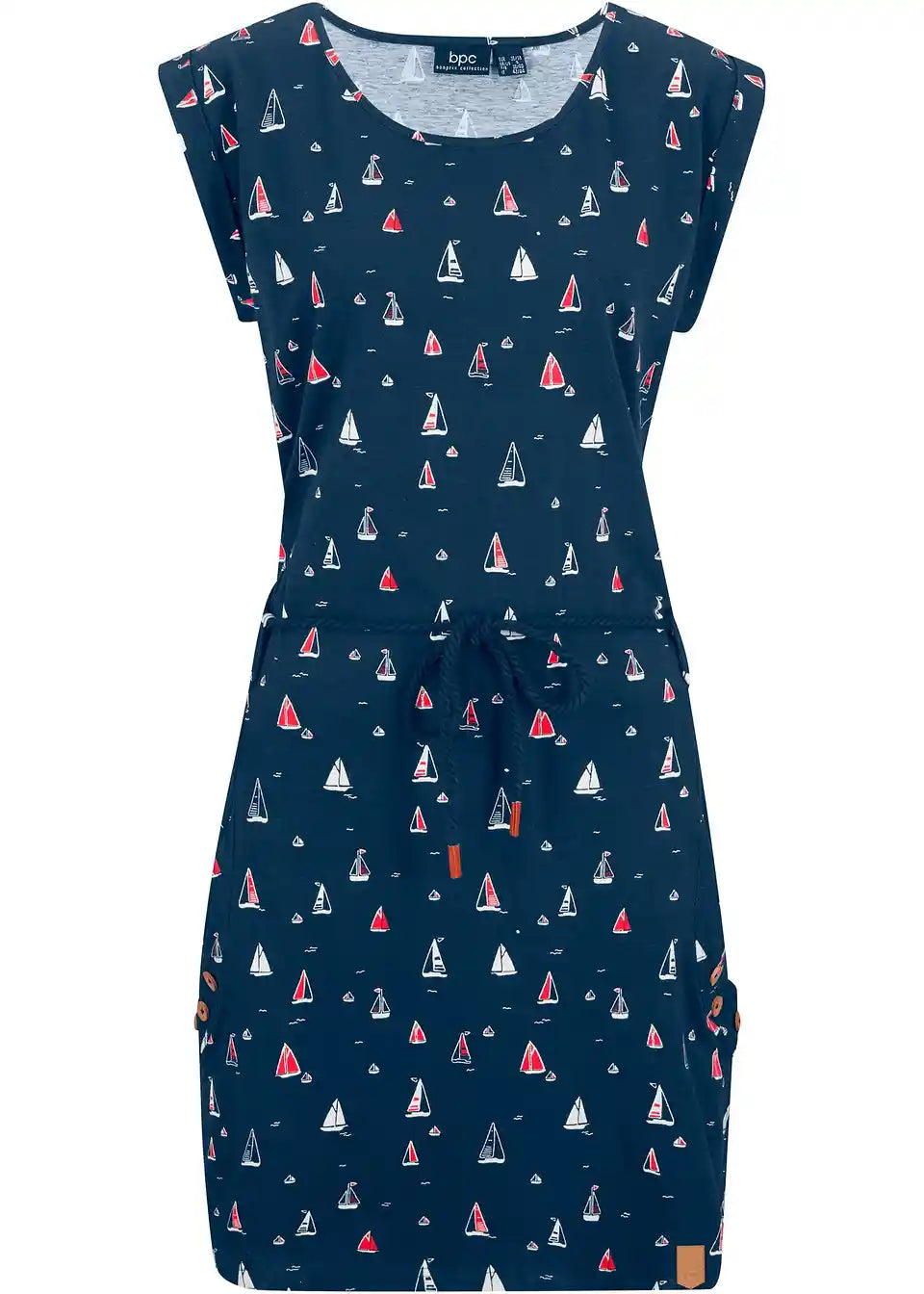 Freizeit-Kleid aus Jersey mit seitlichen Eingriffstaschen und Kordelband