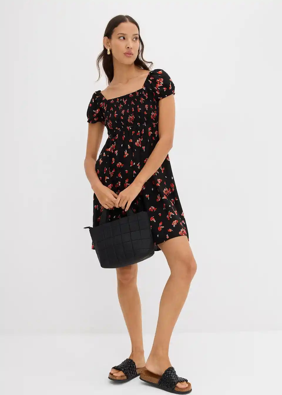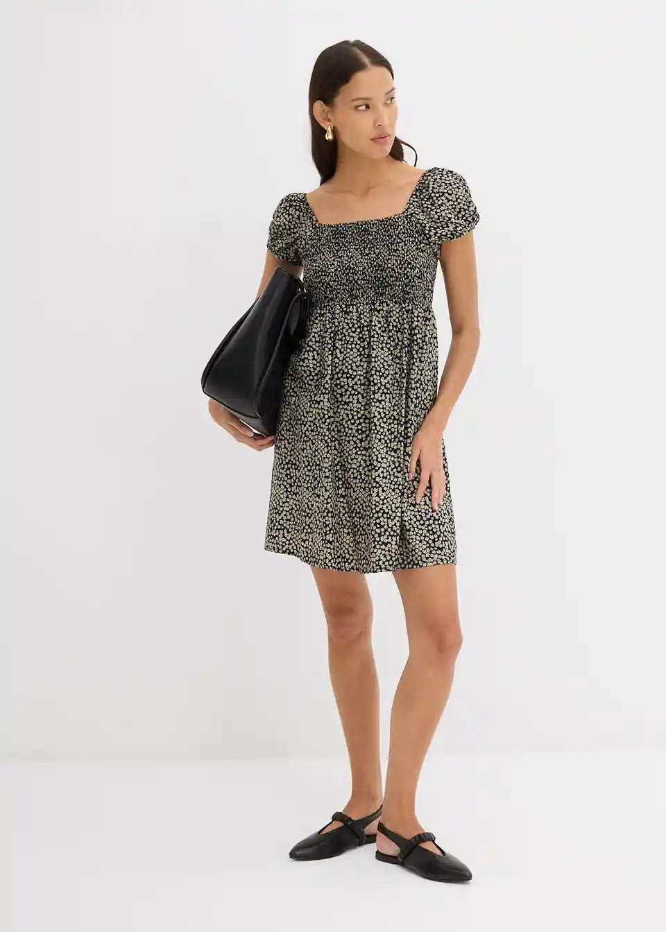 Trendiges Minikleid mit Smok und Puffärmeln
