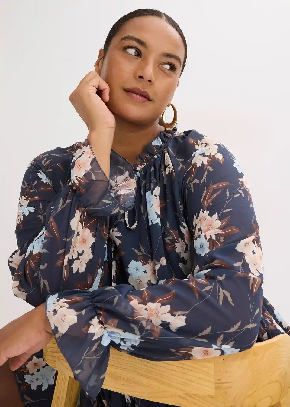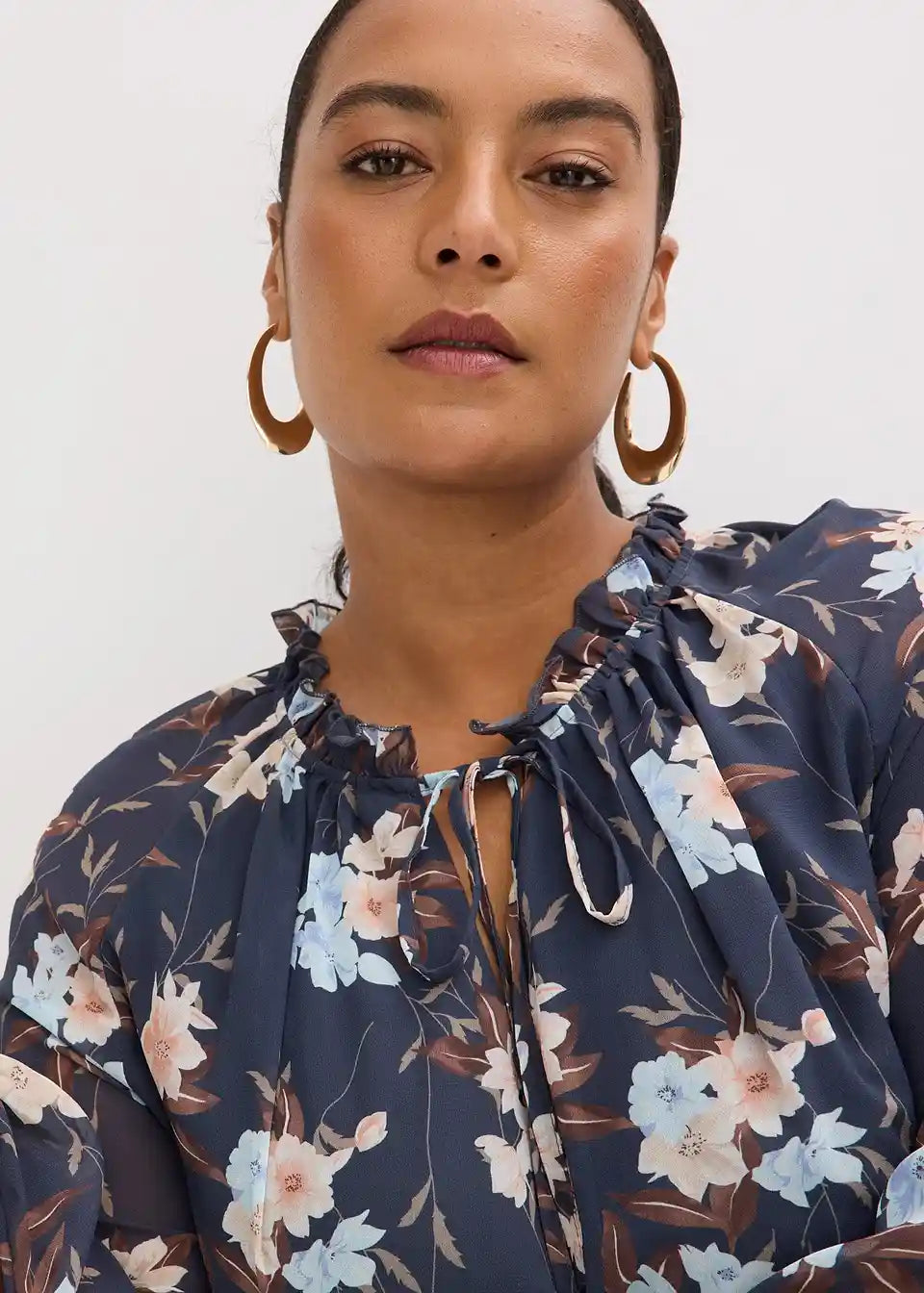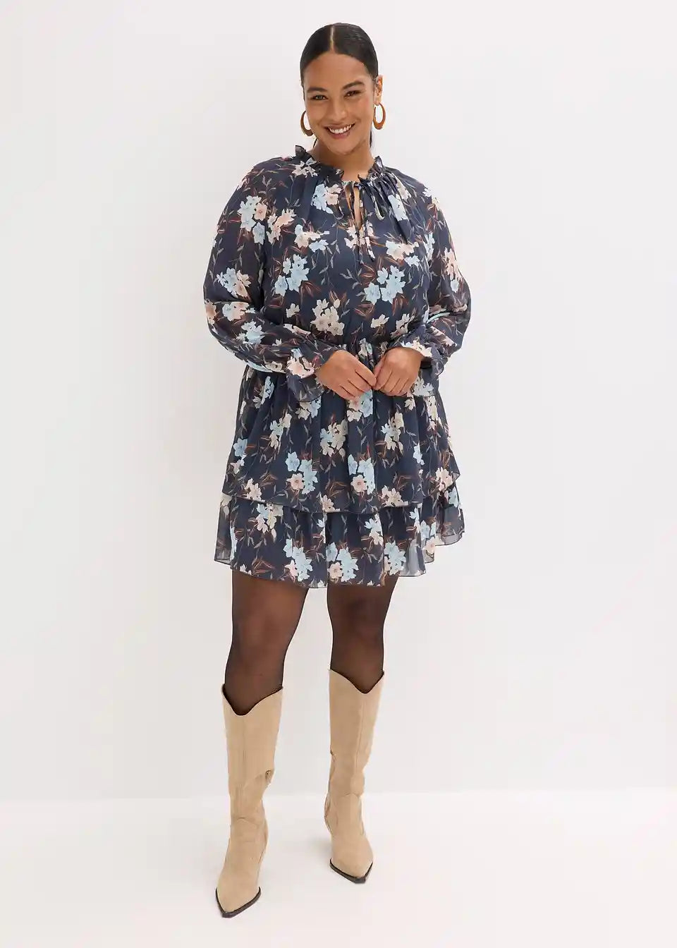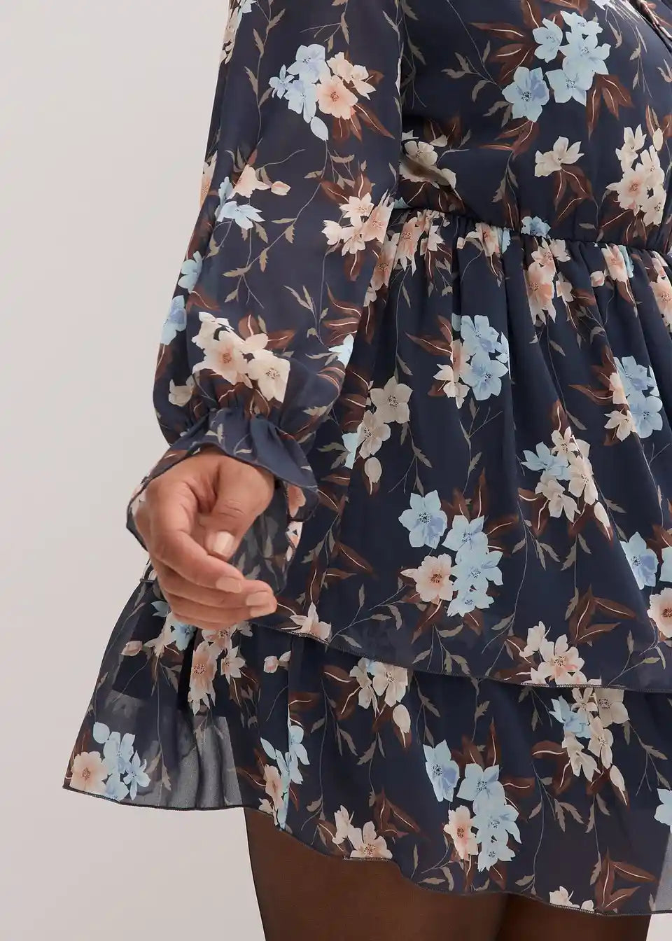 Kurzes Volantkleid mit Rüschen am Auschnitt und Ärmel