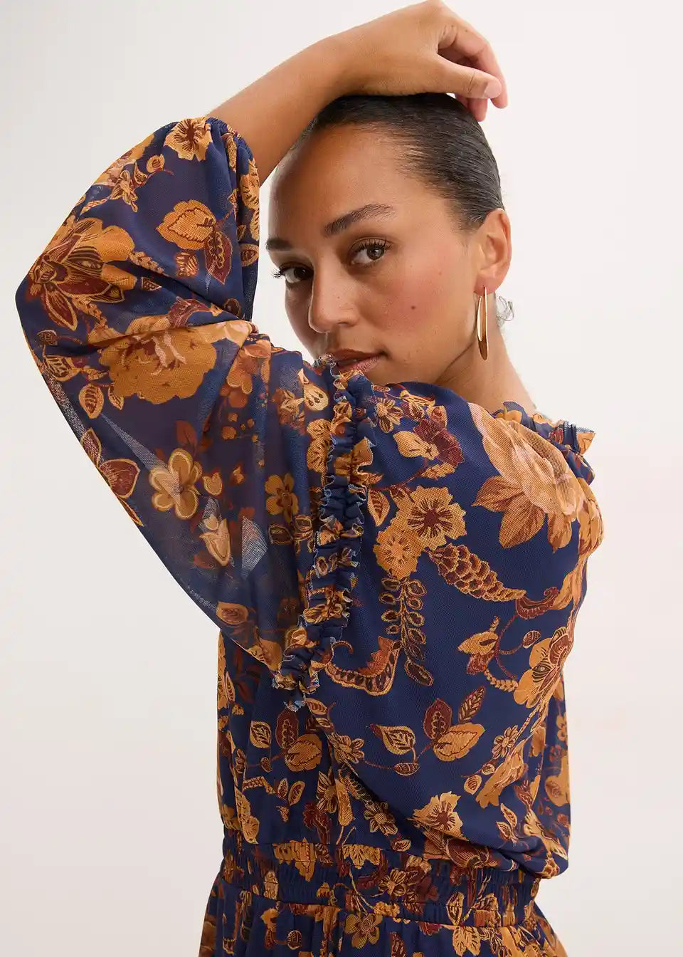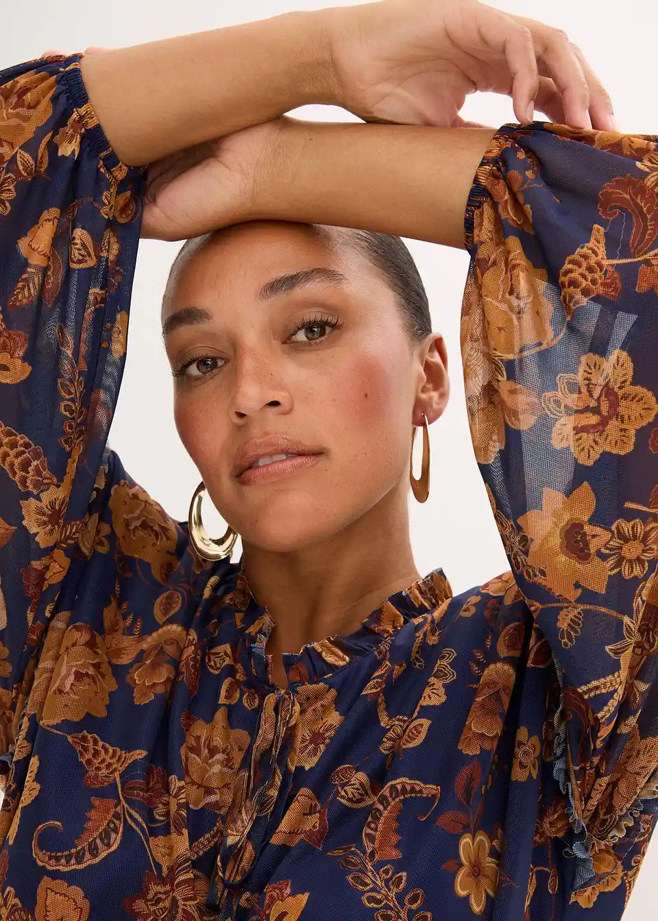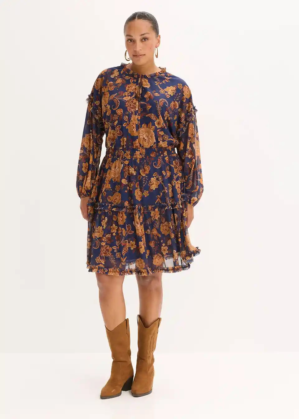 kurzes Tunika-Kleid aus softem Mesh mit kleinen Rüschen-Details
