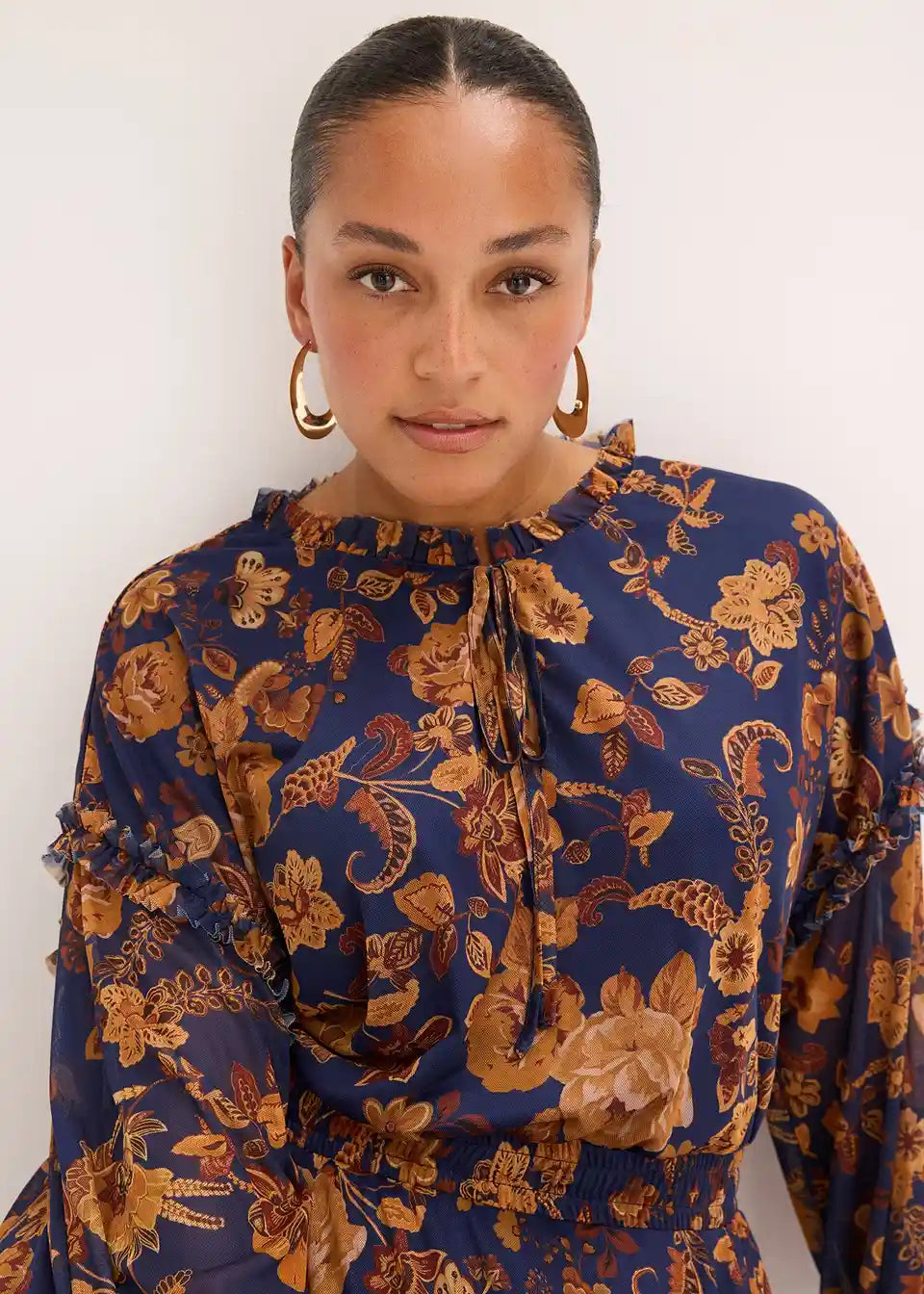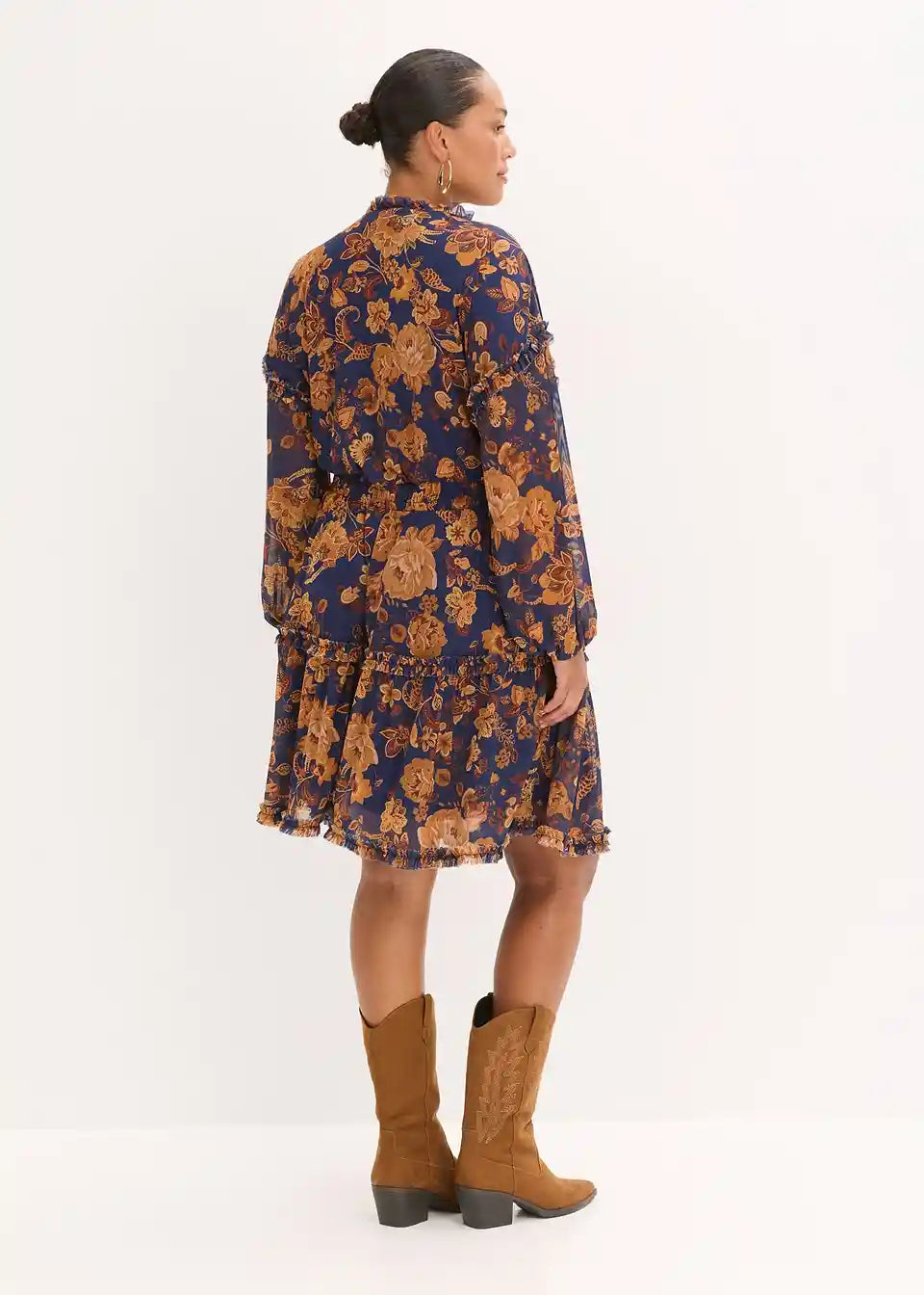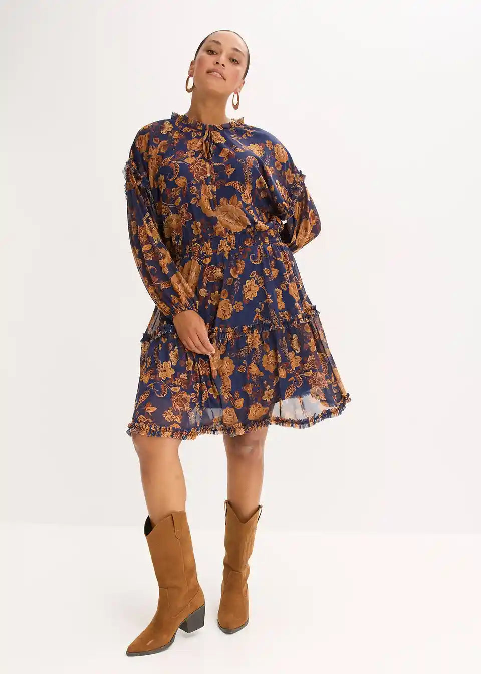 kurzes Tunika-Kleid aus softem Mesh mit kleinen Rüschen-Details