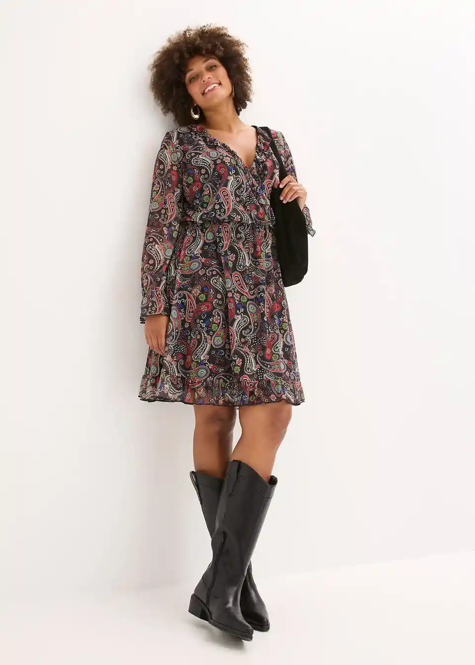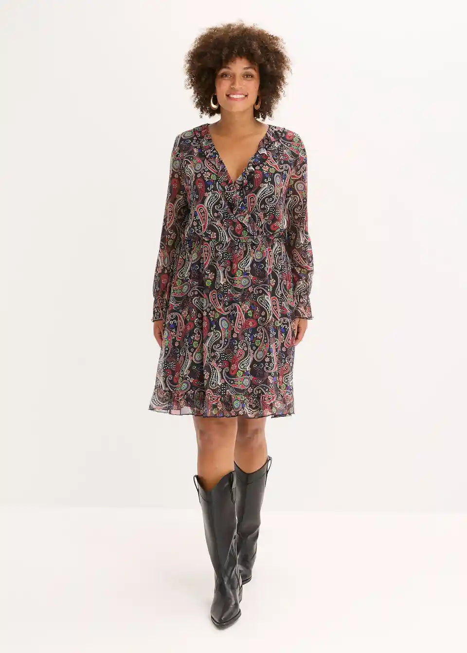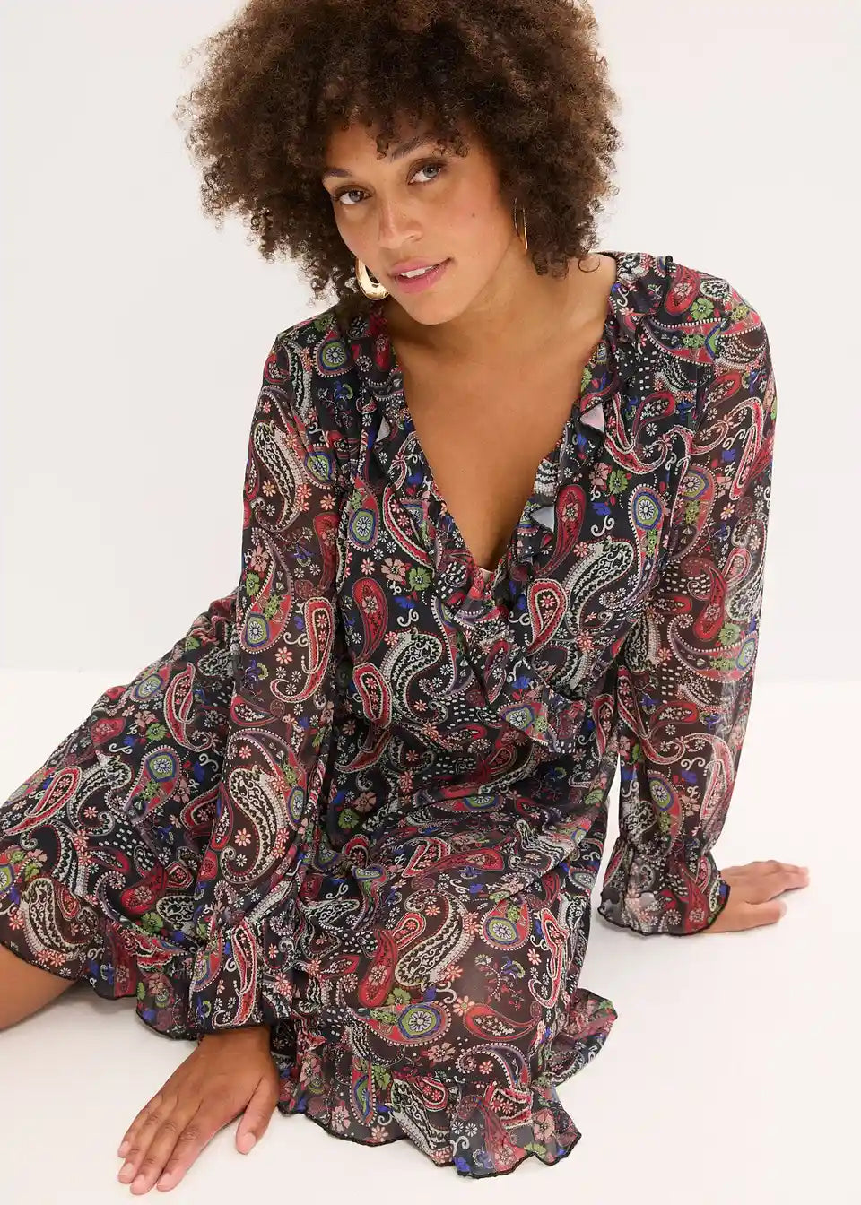 kurzes Kleid aus softem Mesh mit kleinen Volants am Ärmelsaum und Ausschnitt