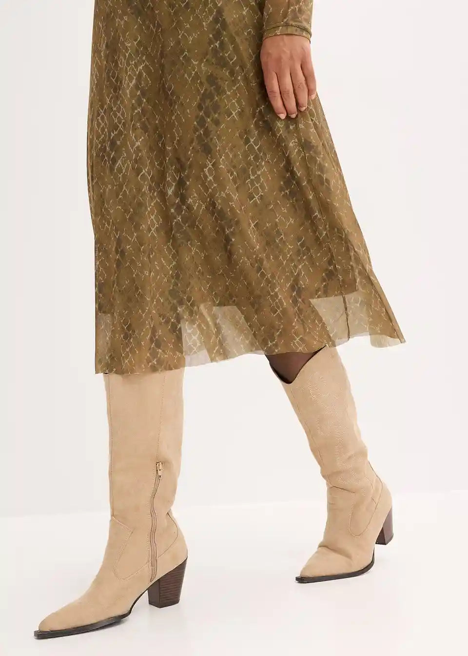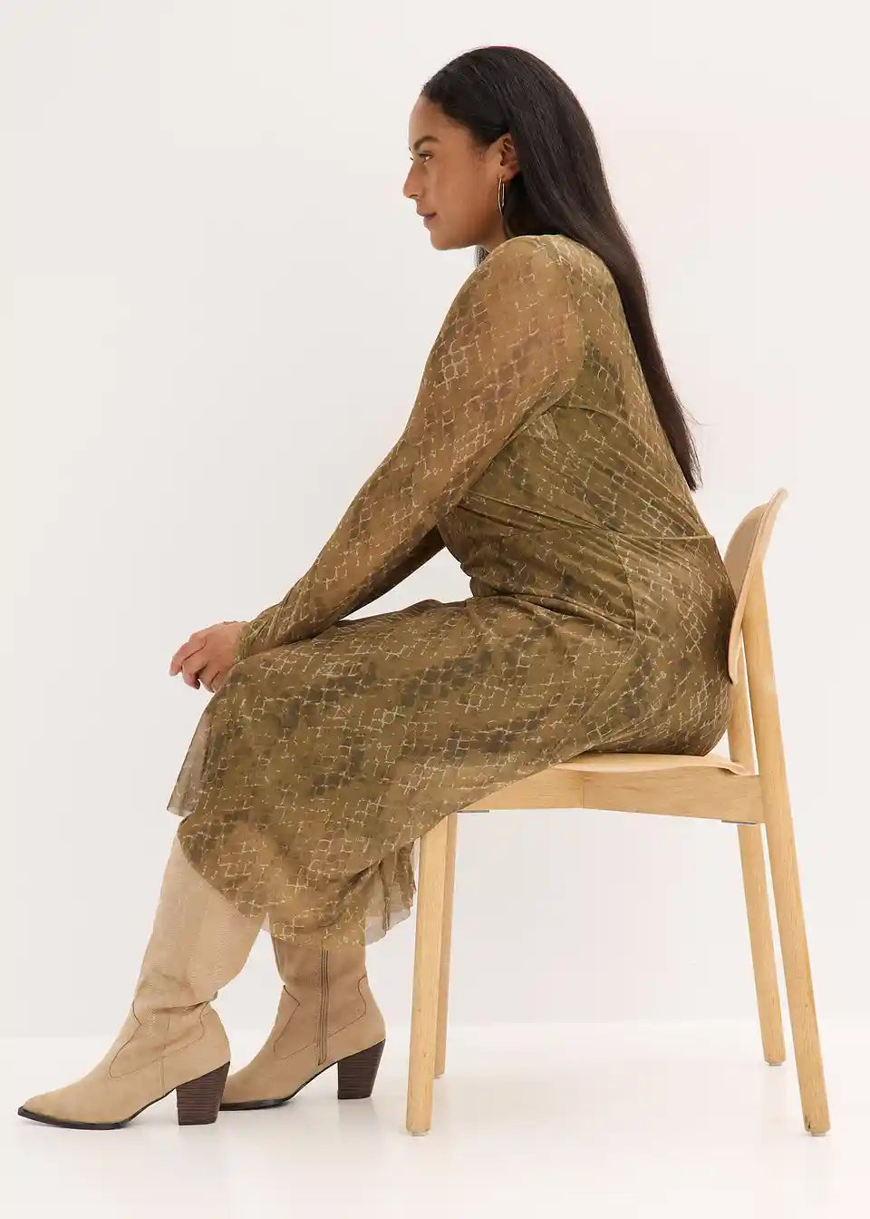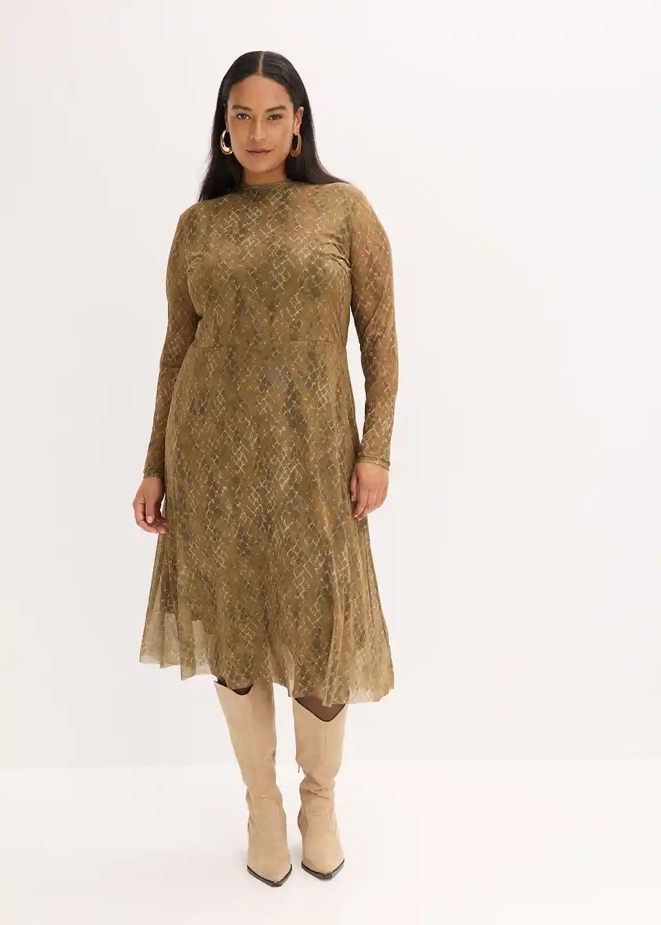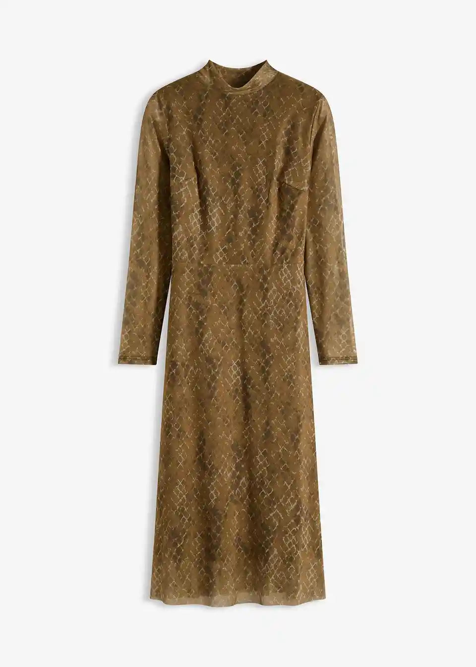 Teilweise transparentes Mesh-Kleid mit angesagtem Druck