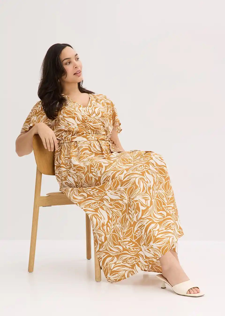 modisch bedrucktes Maxikleid mit Bindeband in der Taille