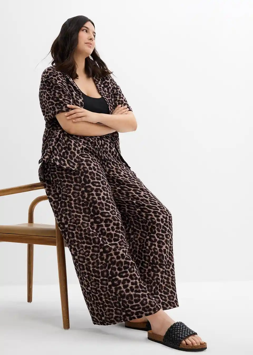 Palazzo-Hose mit hoch geschnittenem, elastischem Bund und seitlichen Eingriffstaschen.
