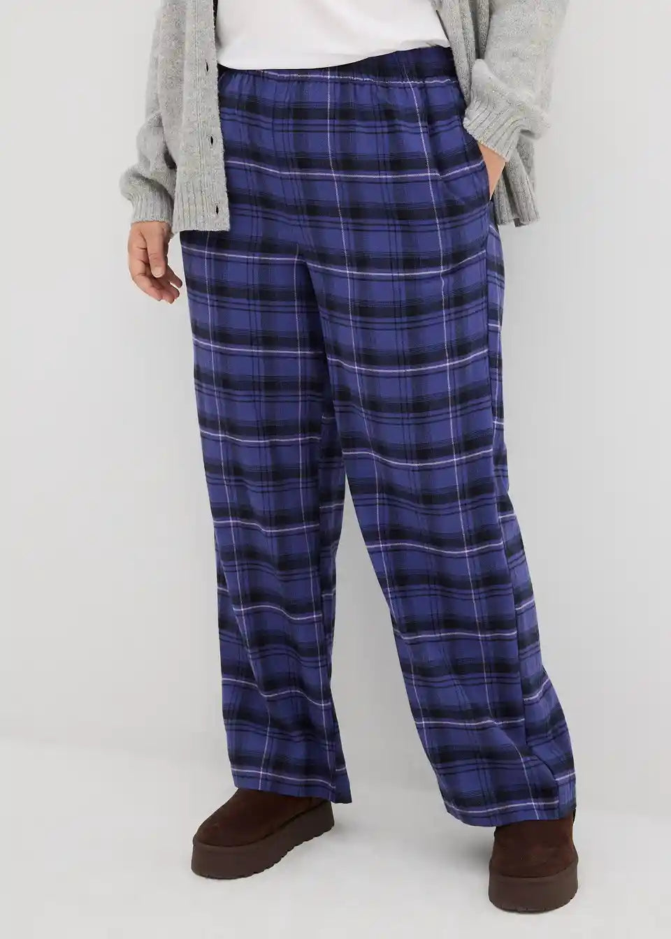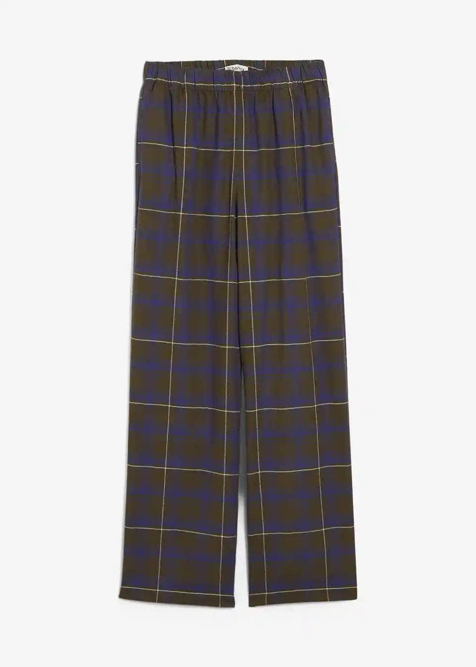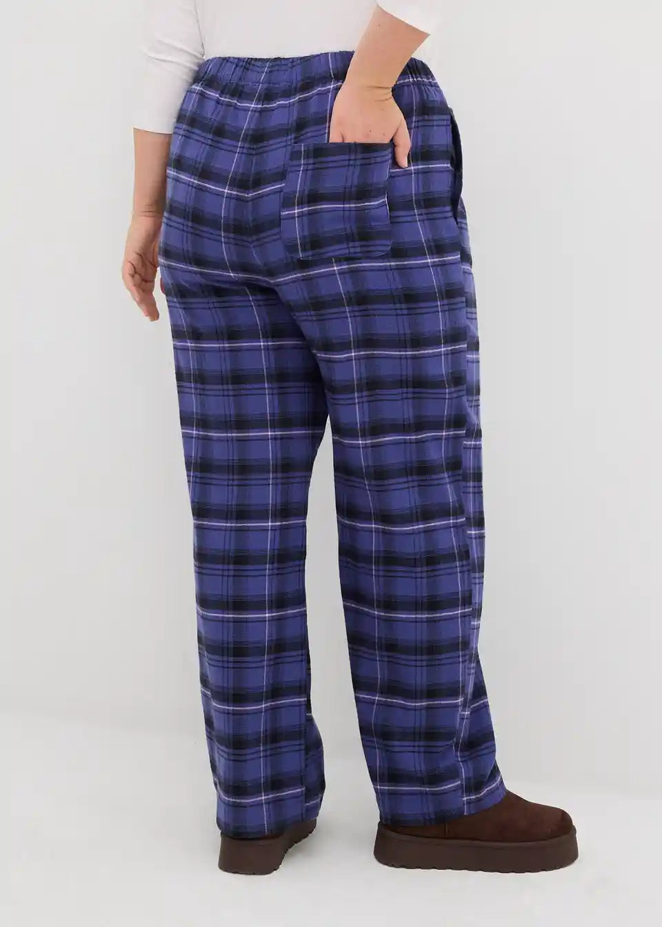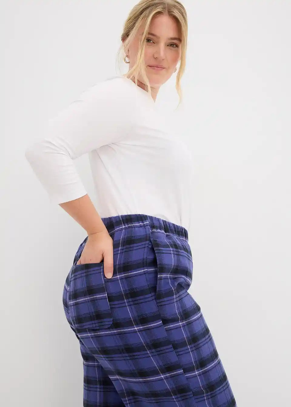 Flanellhose mit hoch geschnittenem, elastischem Bund und seitlichen Eingriffstaschen.