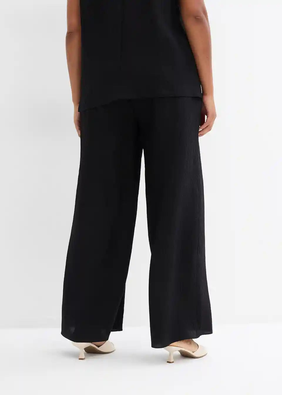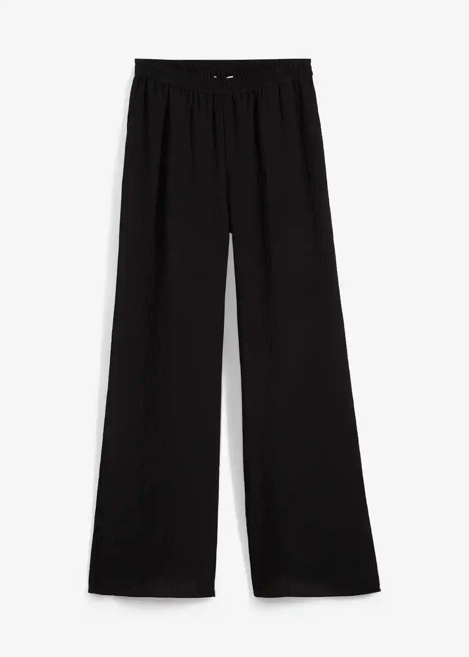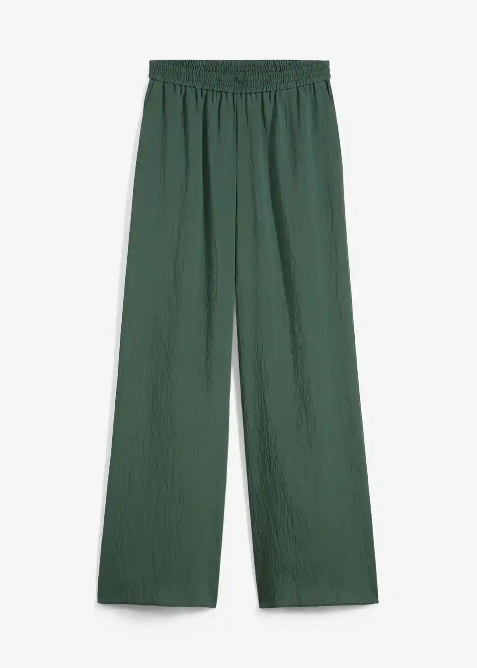 High-waist Hose mit elastischem Bund, seitlichen Taschen und weitem Bein aus strukturiertem Crinkle