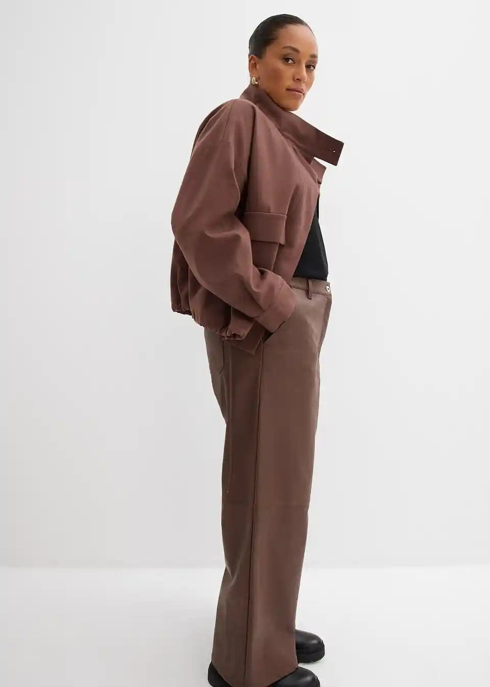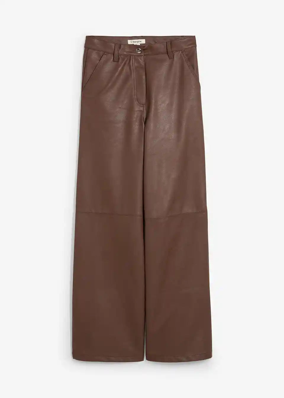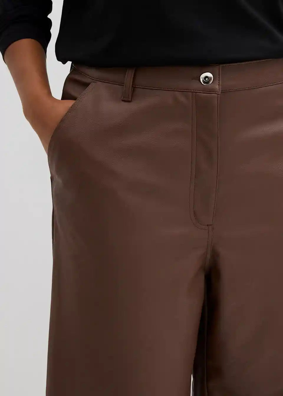 Ausgestellte Lederimitat-Hose mit farblich passenden Steppnähten auf Kniehöhe