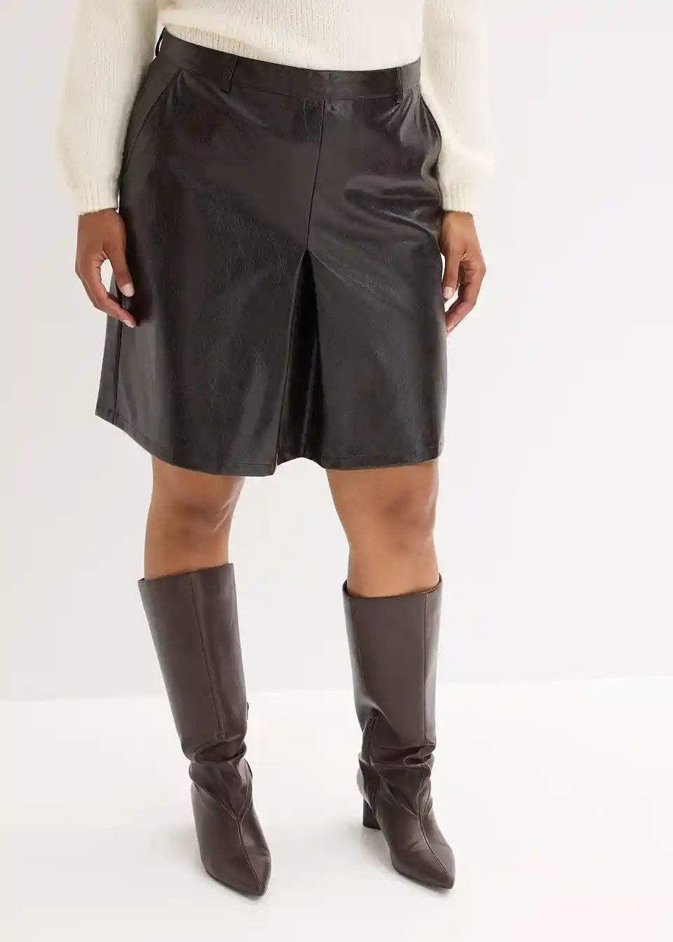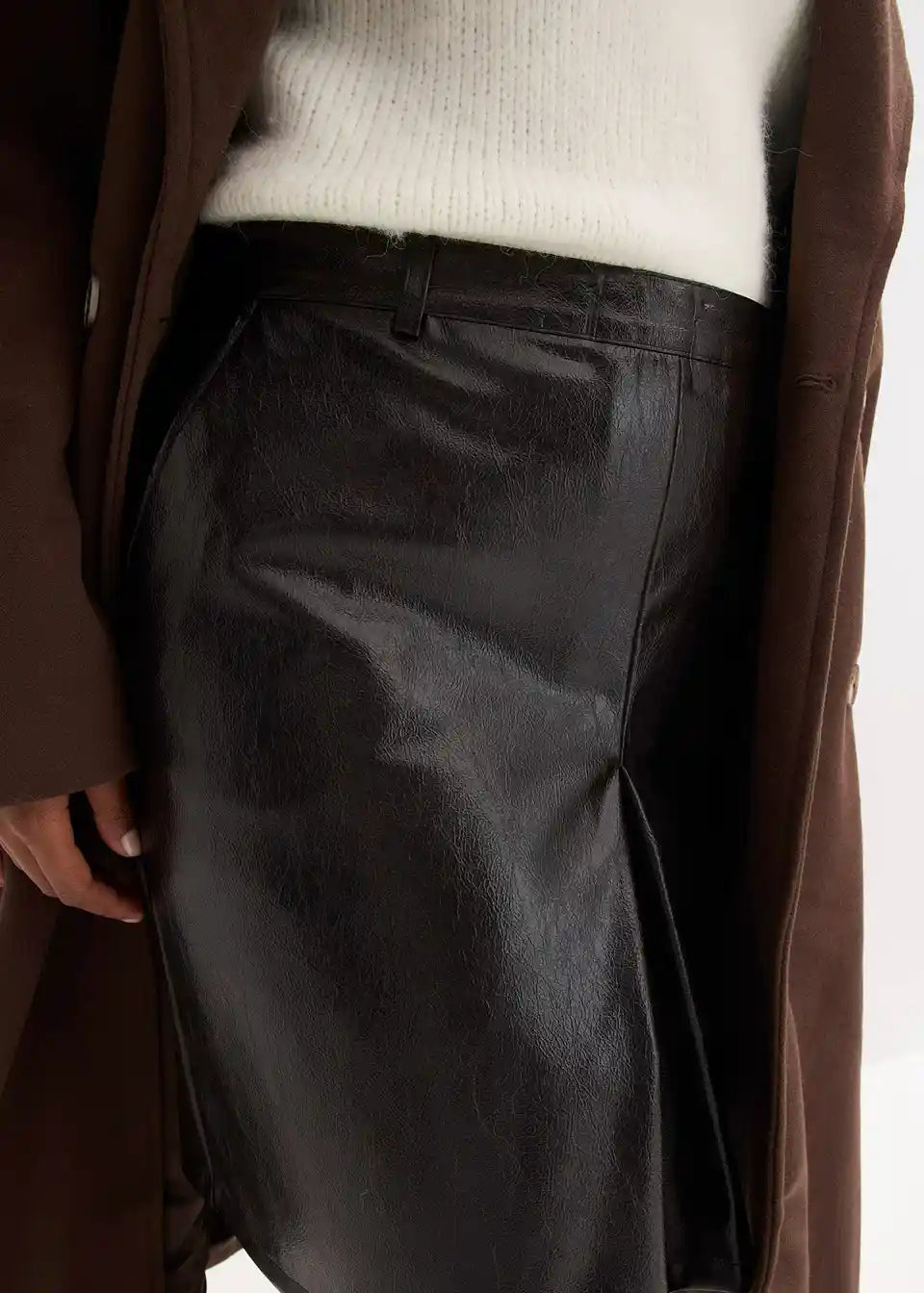 Minirock aus geprägtem Lacklederimitat mit Falte vorne