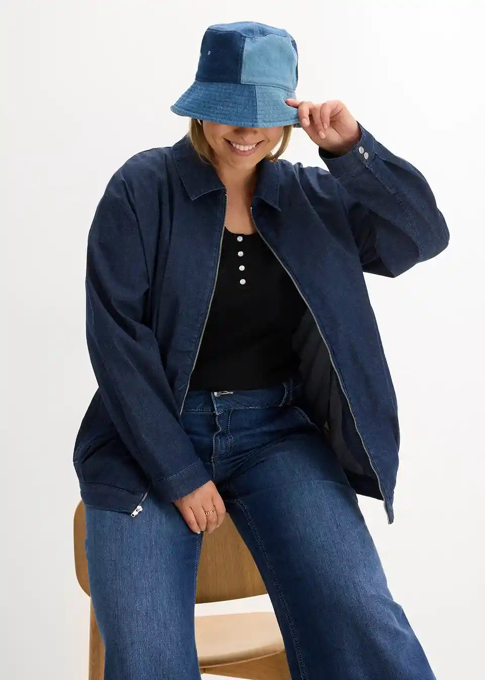 Weite Jeansjacke im Blousonstil mit Reißverschluss