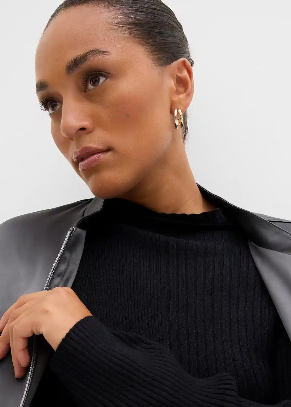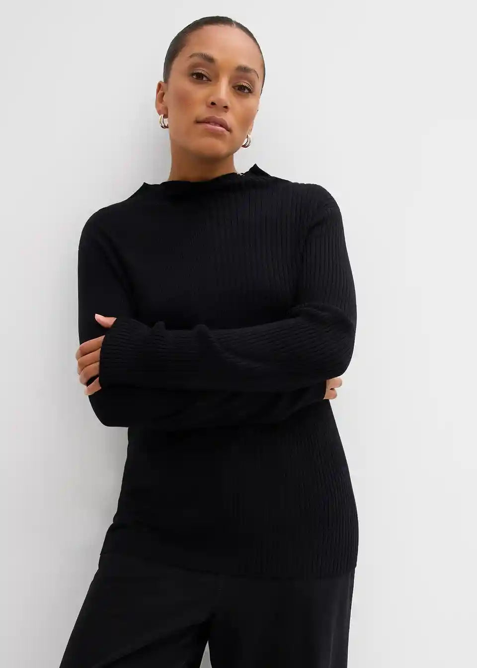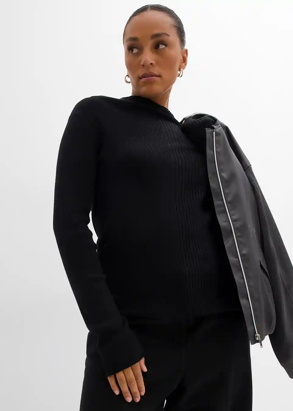 Figurbetontes Langarmshirt mit Rollkragen aus Rippstrick