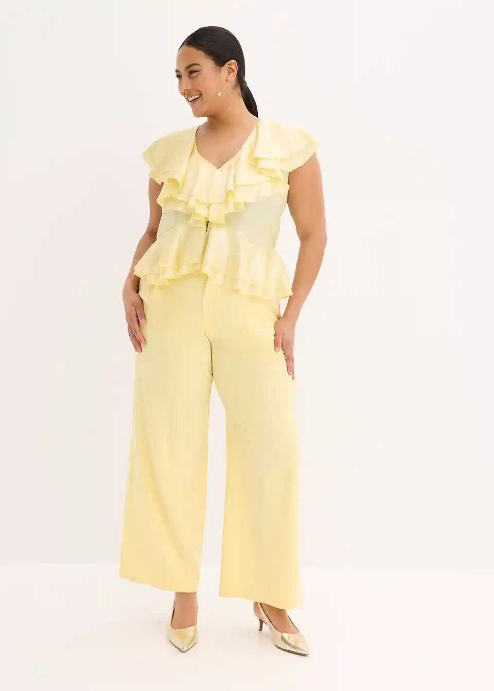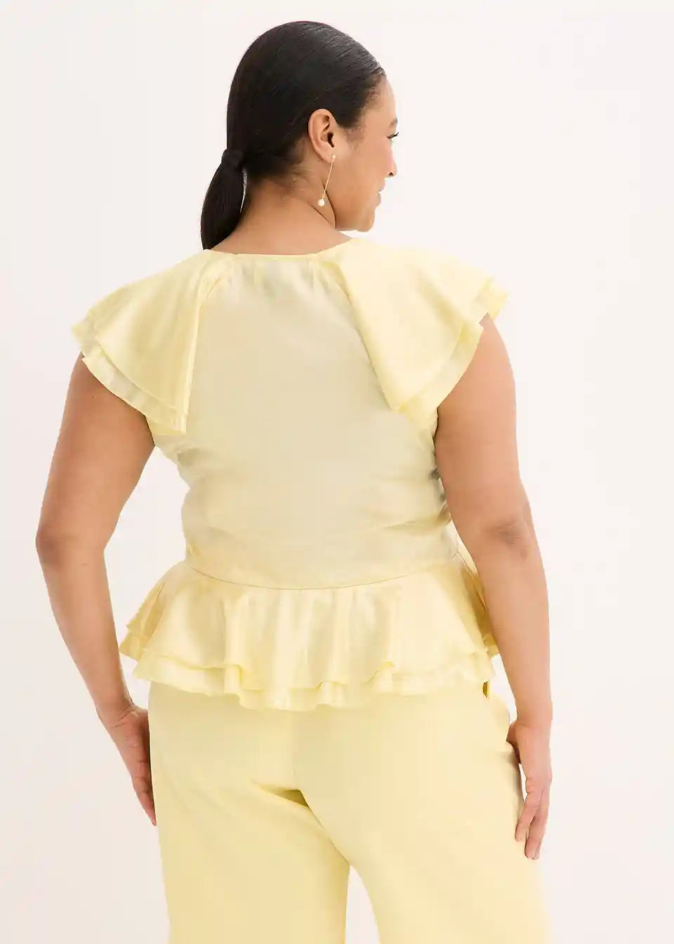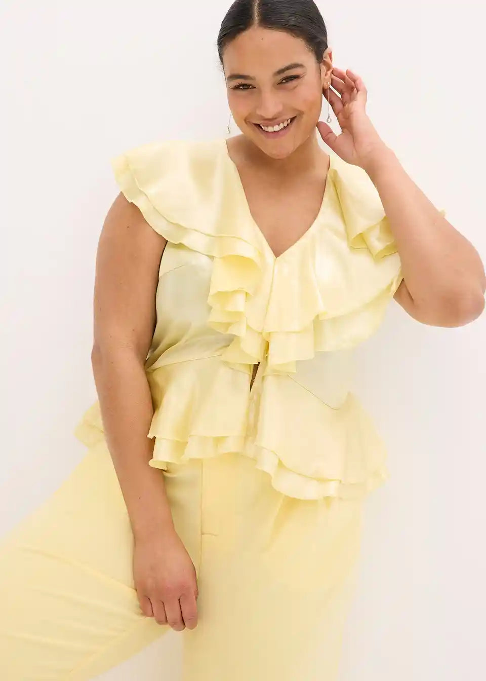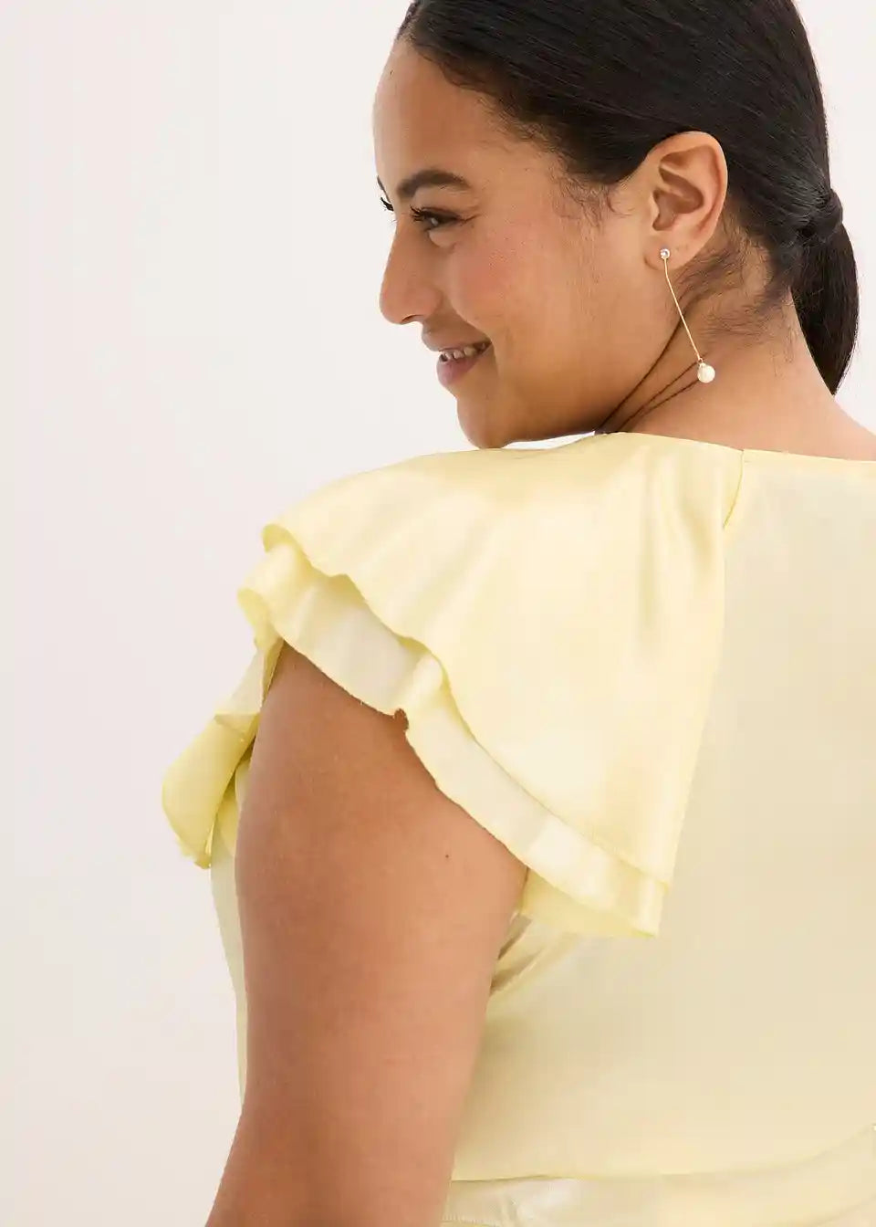 Modern und feminin: Kurze Bluse aus glänzendem Material mit Volants
