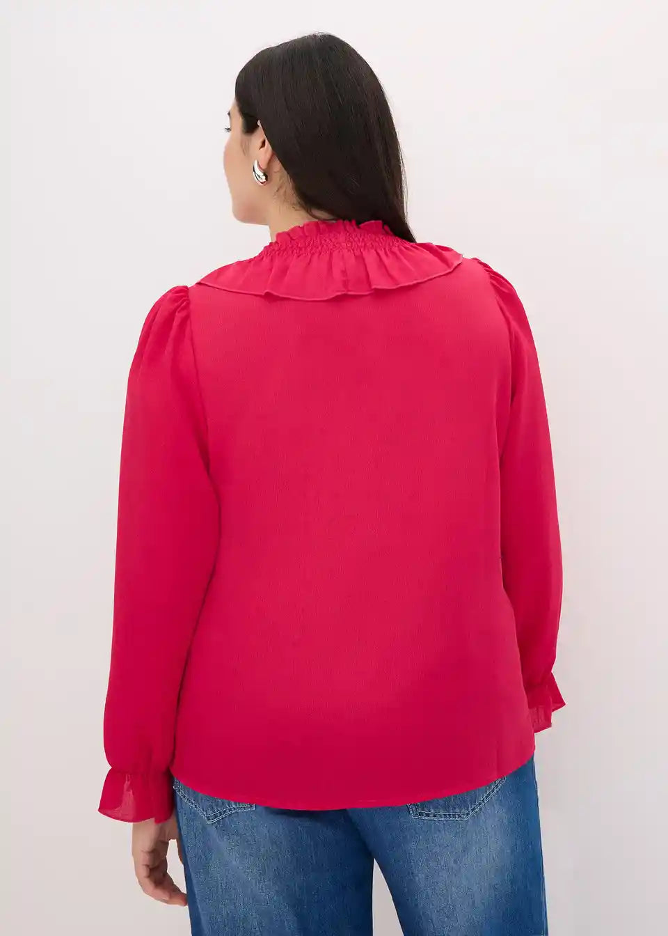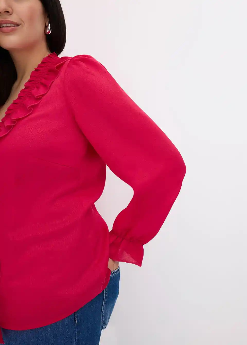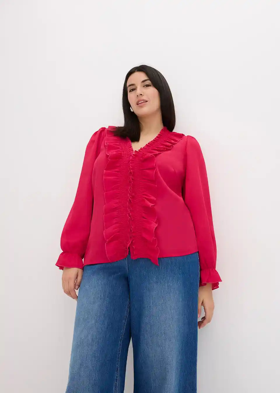 modische Bluse mit Volants am Ausschnitt und entlang der Knopfleiste vorne