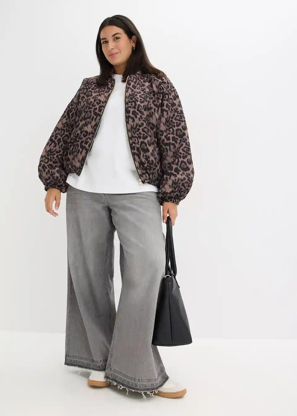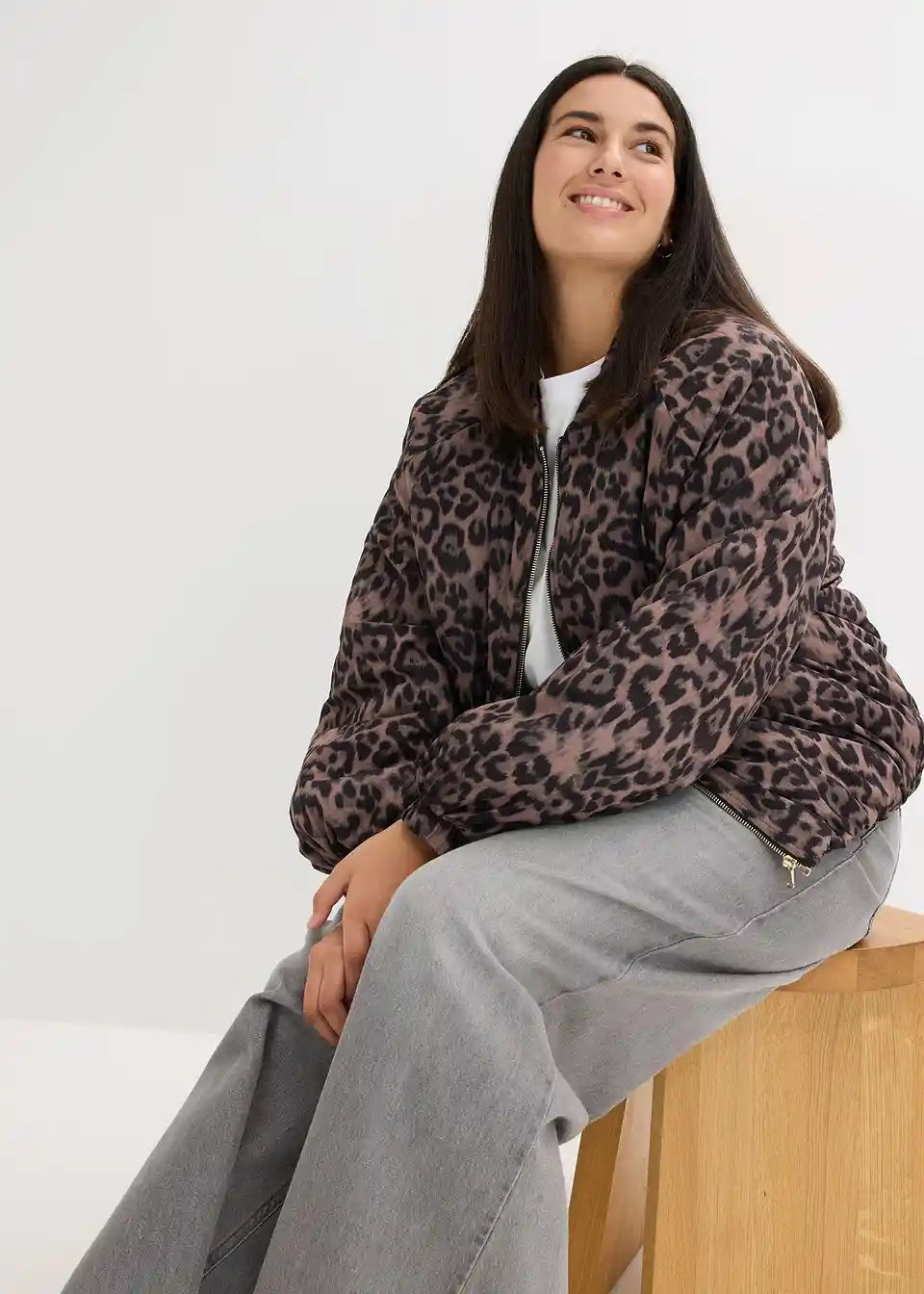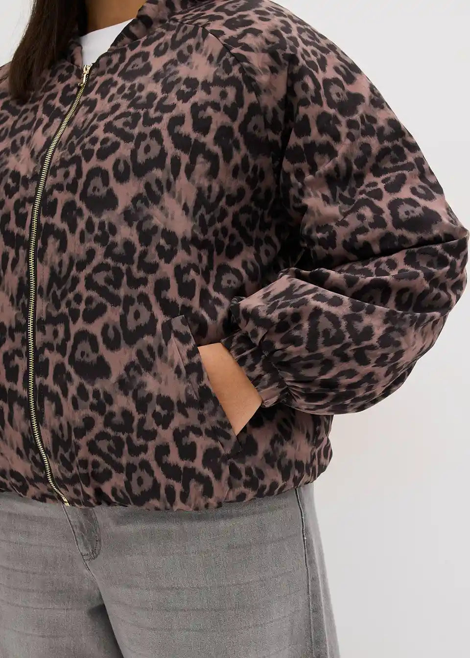 modische wattierte Blouson-Jacke mit weiten Ballonärmeln und Reißverschluss vorne