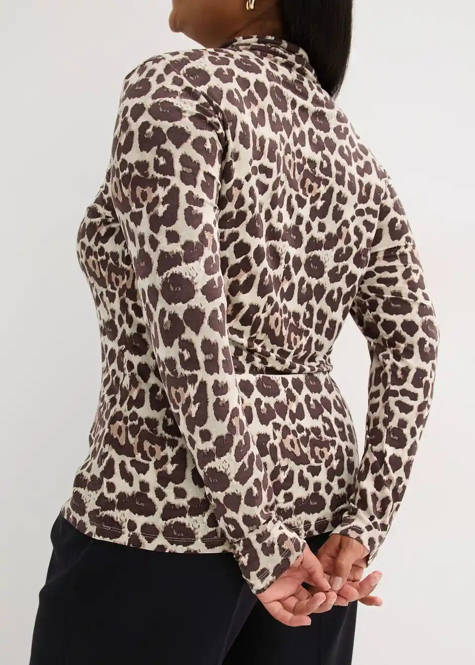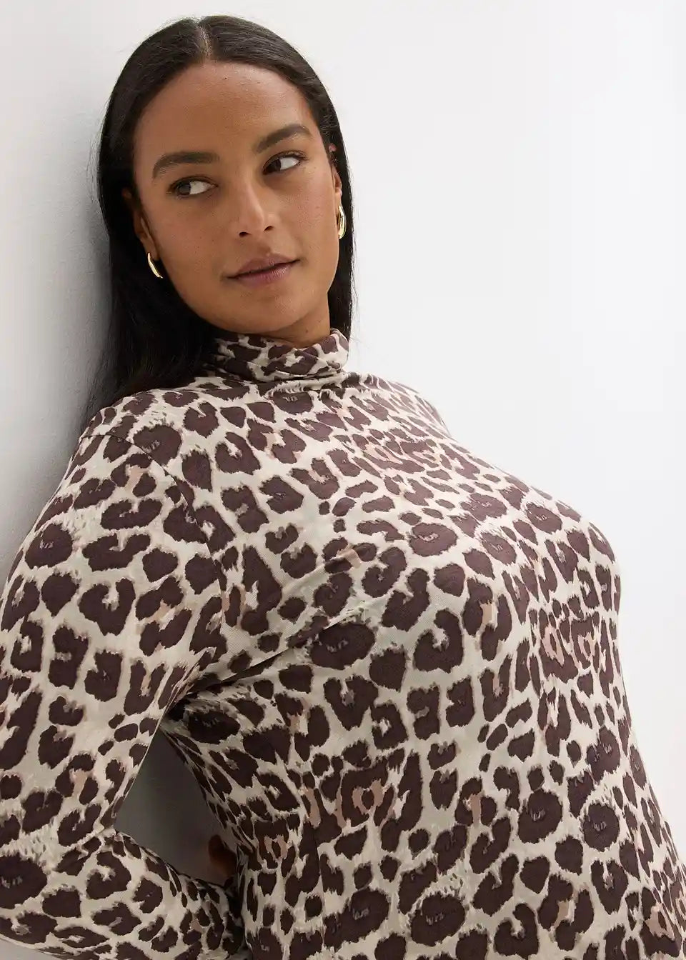modisch bedrucktes Langarmshirt aus softem Viskose-Mix mit Stehkragen
