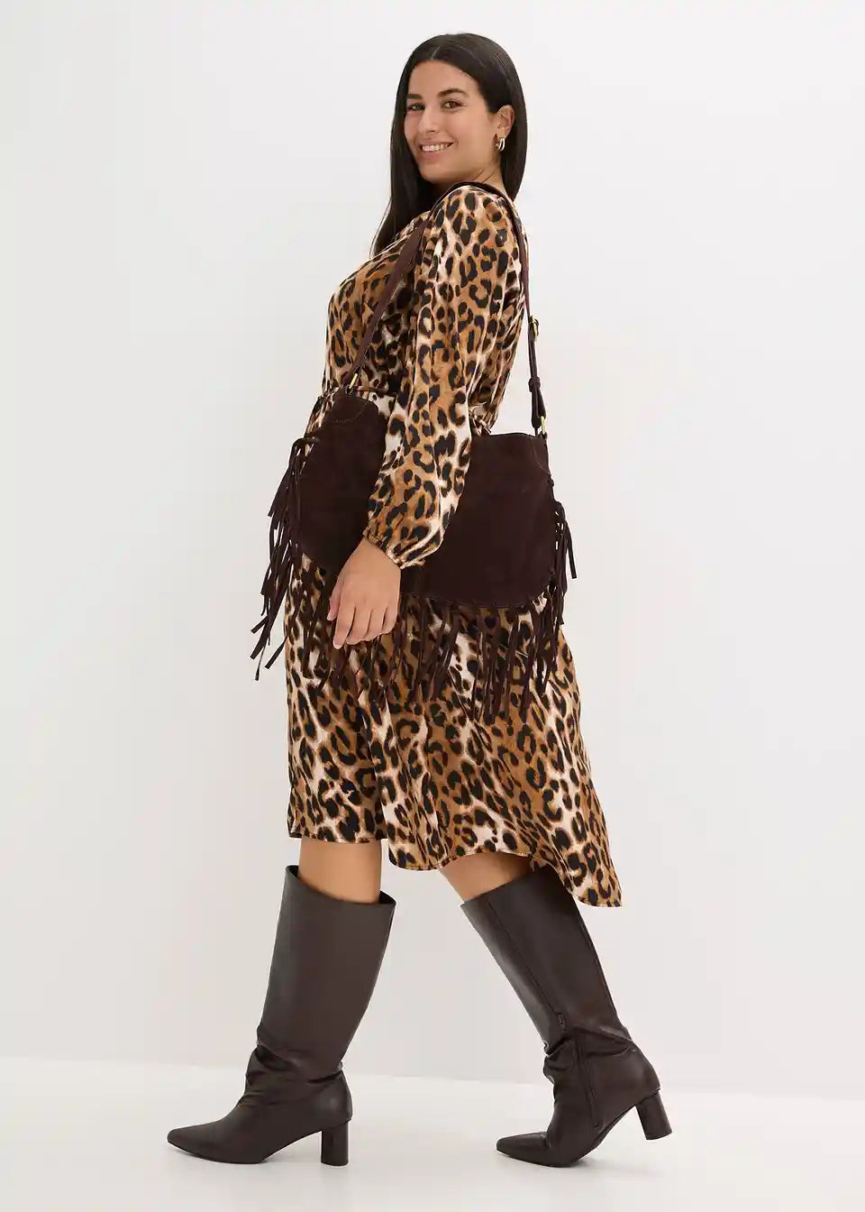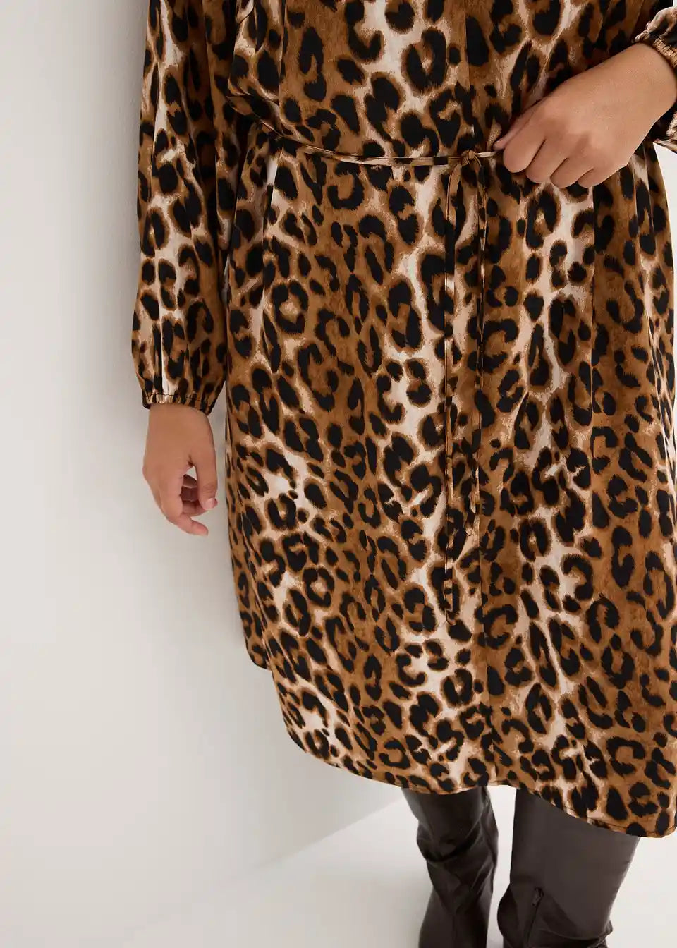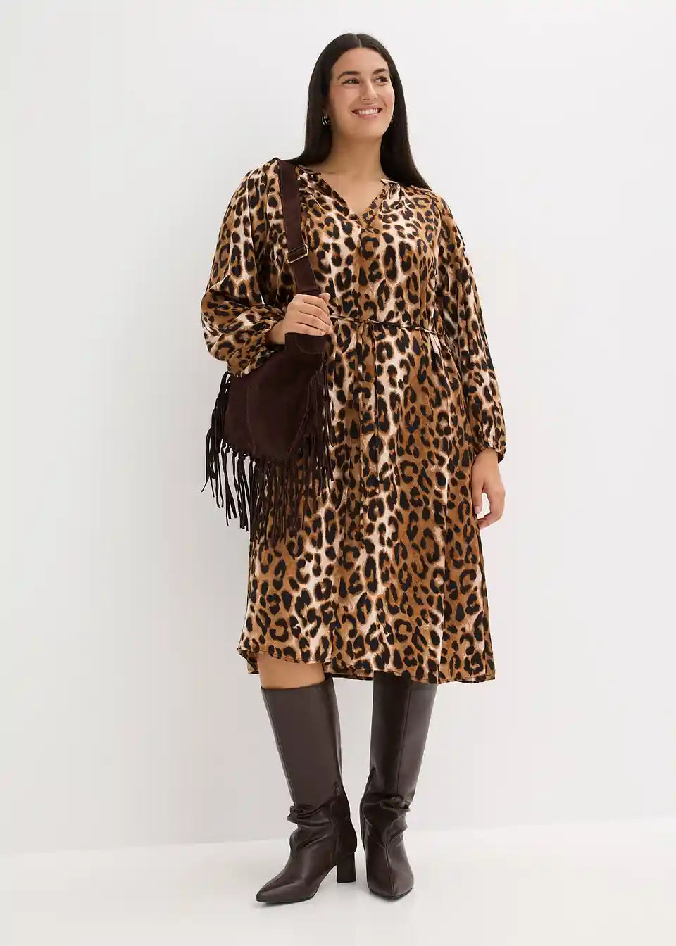 modisches Midikleid aus fließendem Satin mit Bindeband in der Taille