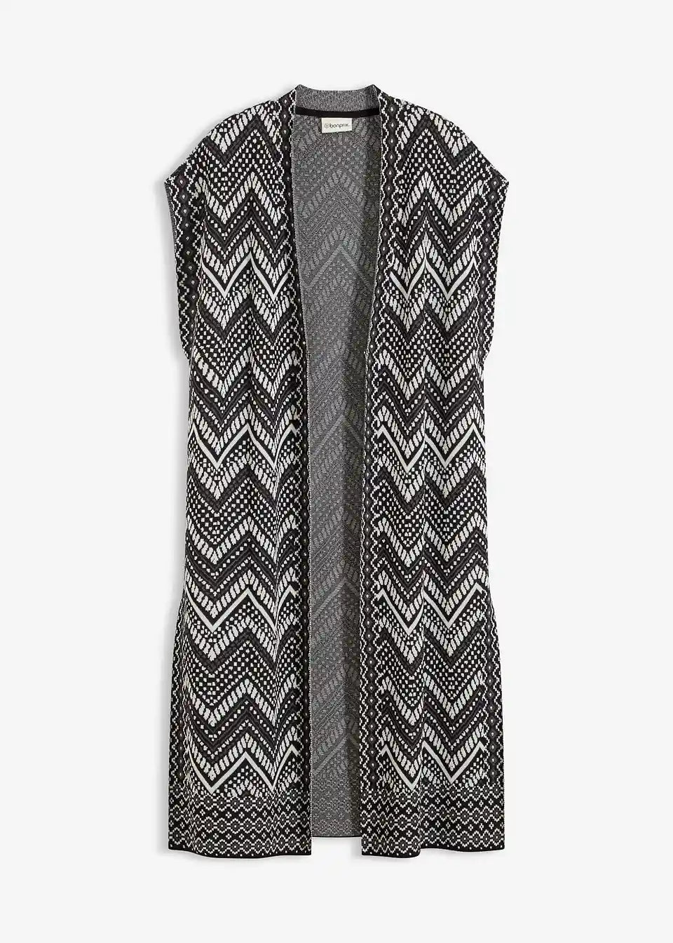 modische Jacquard-Strick-Weste mit überschnittener Schulter und Seitenschlitzen
