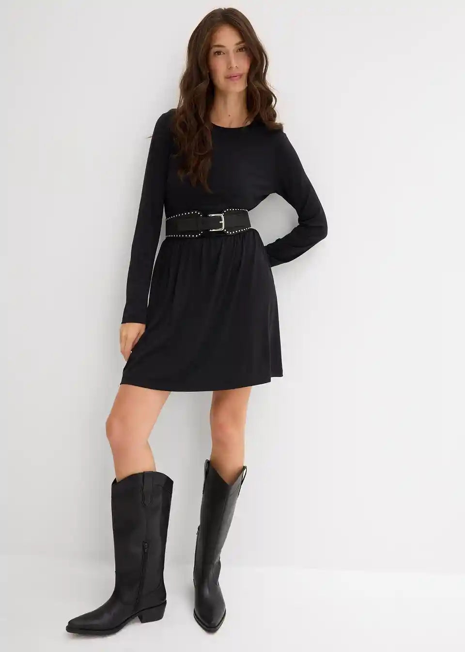 Kurzes Shirtkleid mit ausgestelltem Saum