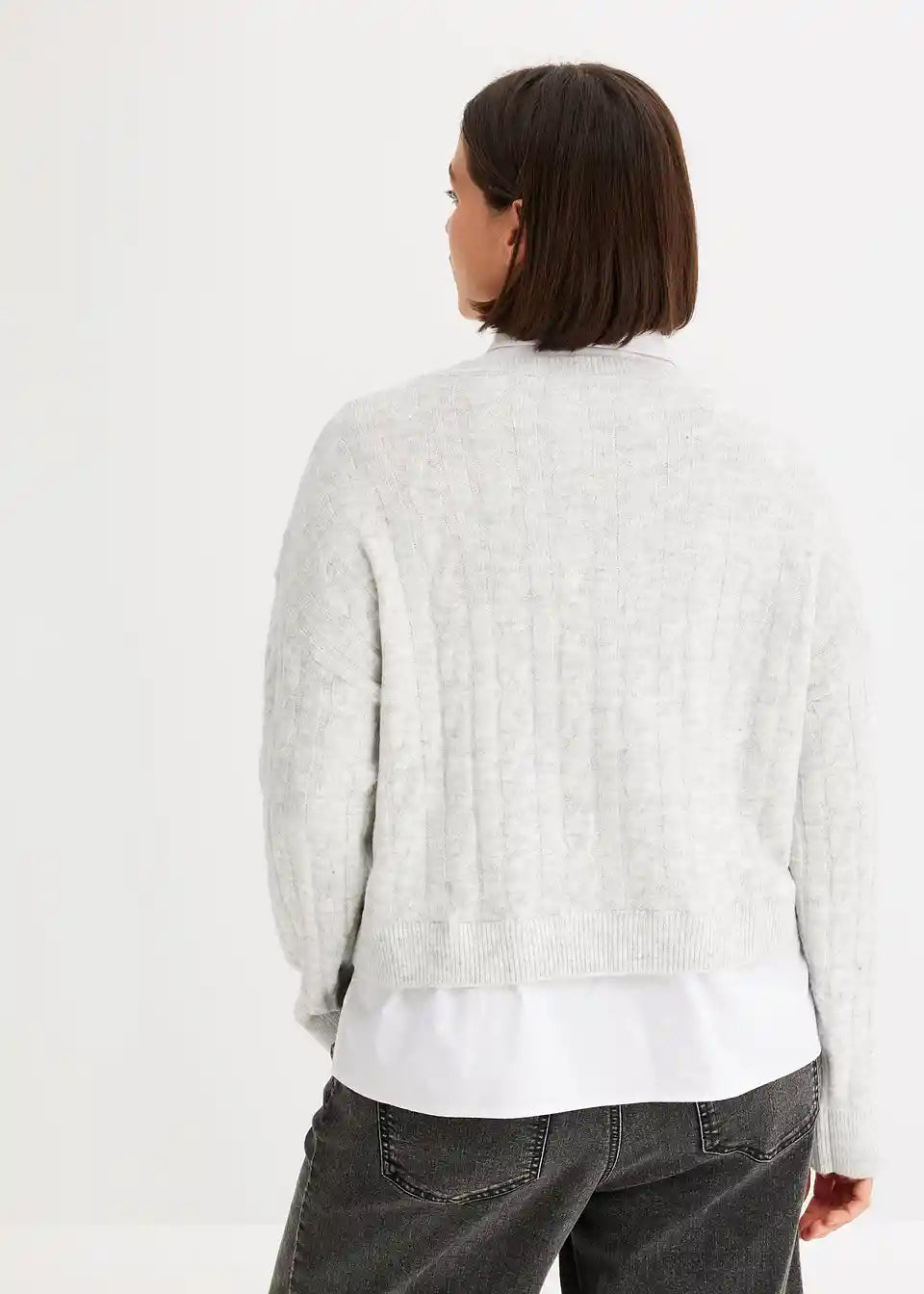 Pullover mit Zopfmuster und Blusen-Einsatz