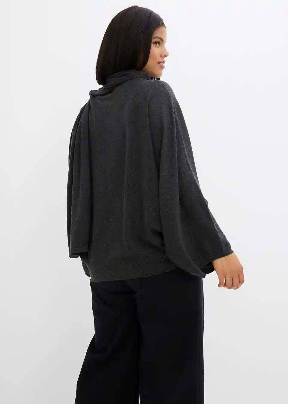 Weit geschnittener Pullover mit weiten Ärmeln und Schaldetail