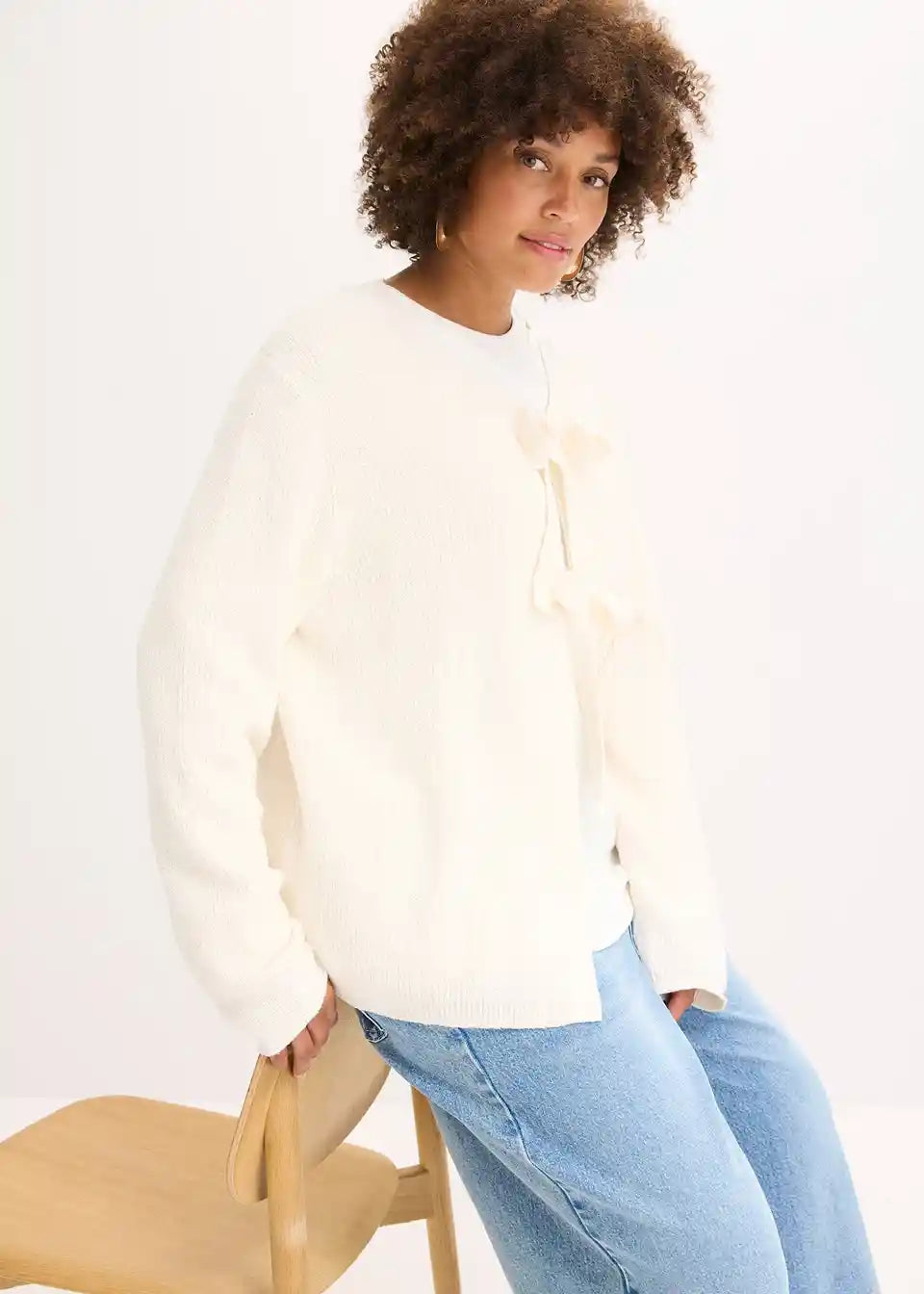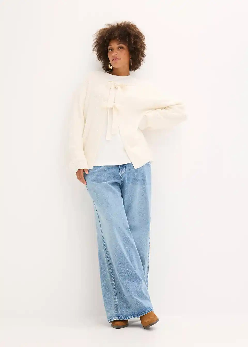 Moderne Strickjacke mit Bindebändern