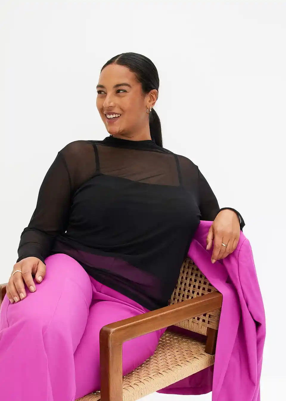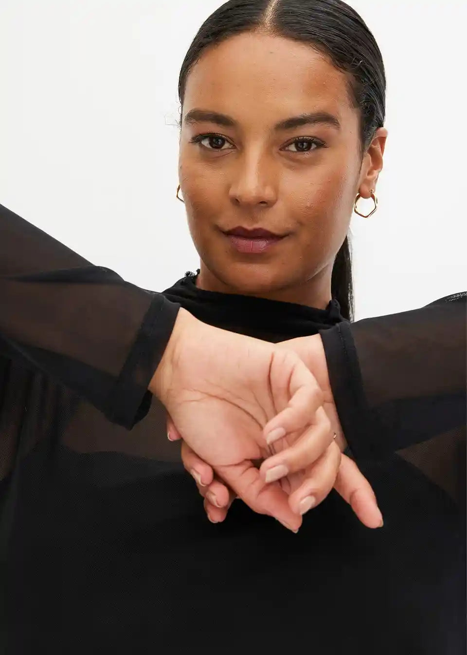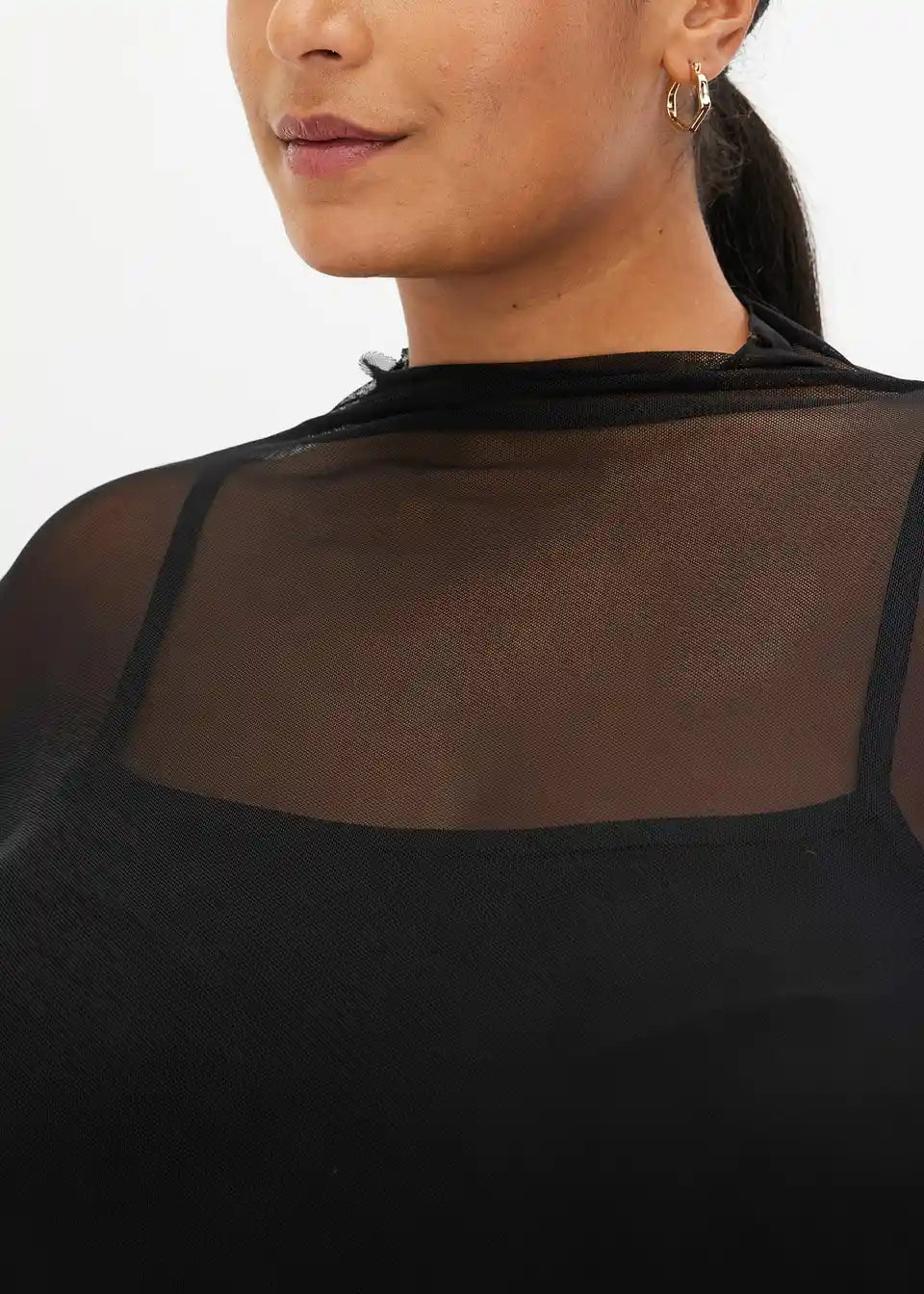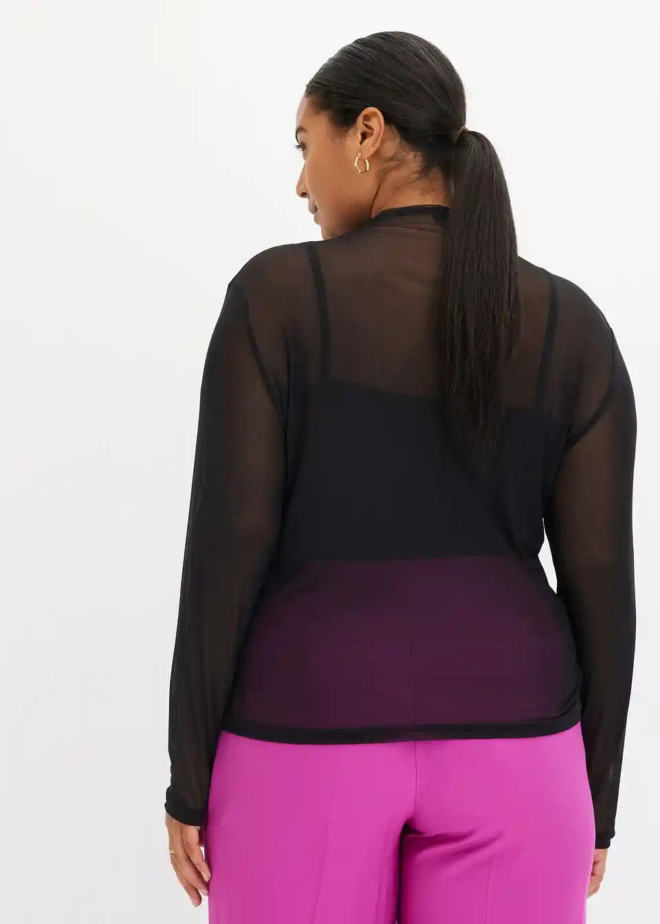 figurbetontes Mesh-Langarmshirt mit Stehkragen