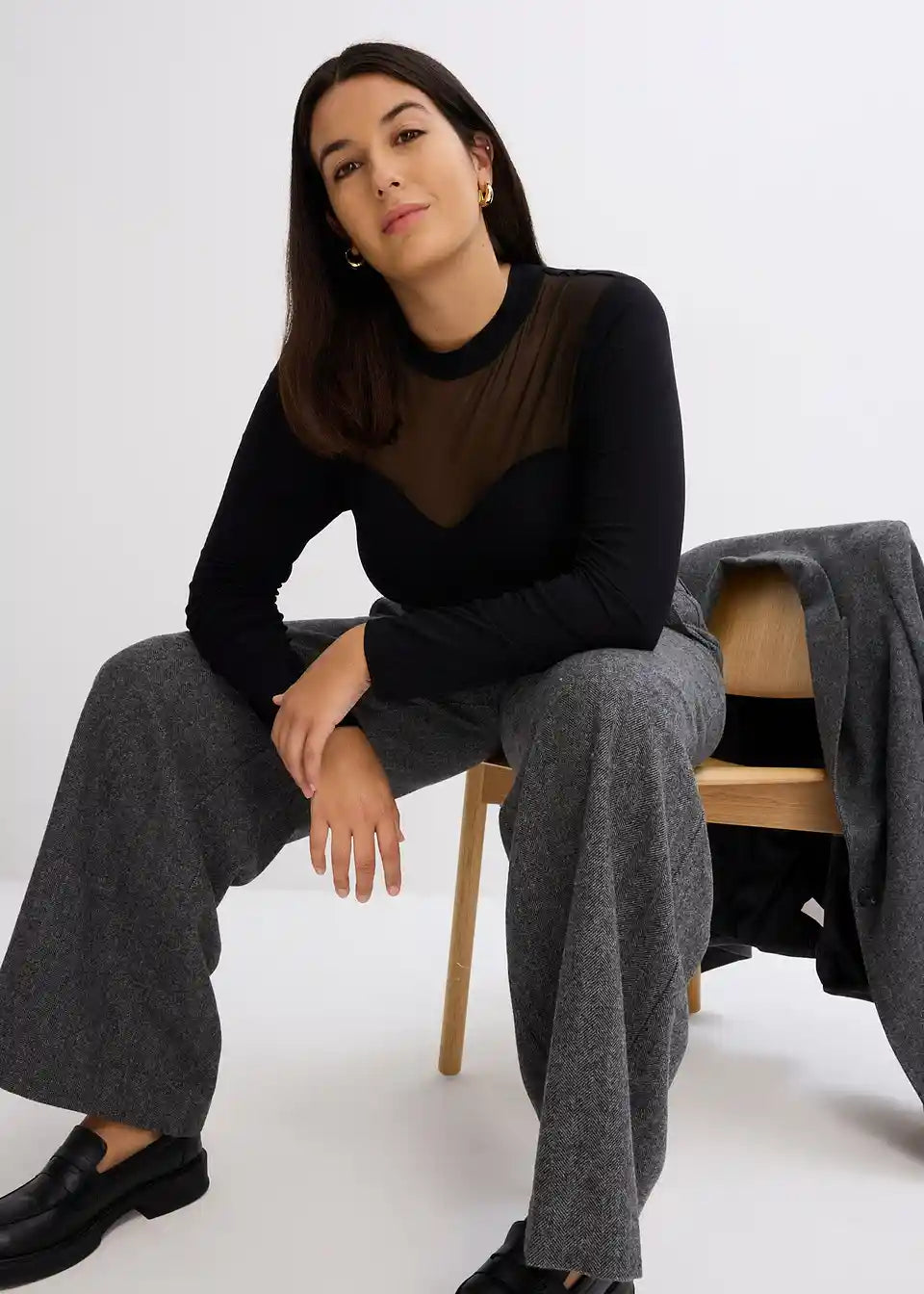 Langarmshirt mit transparenten Dekollete