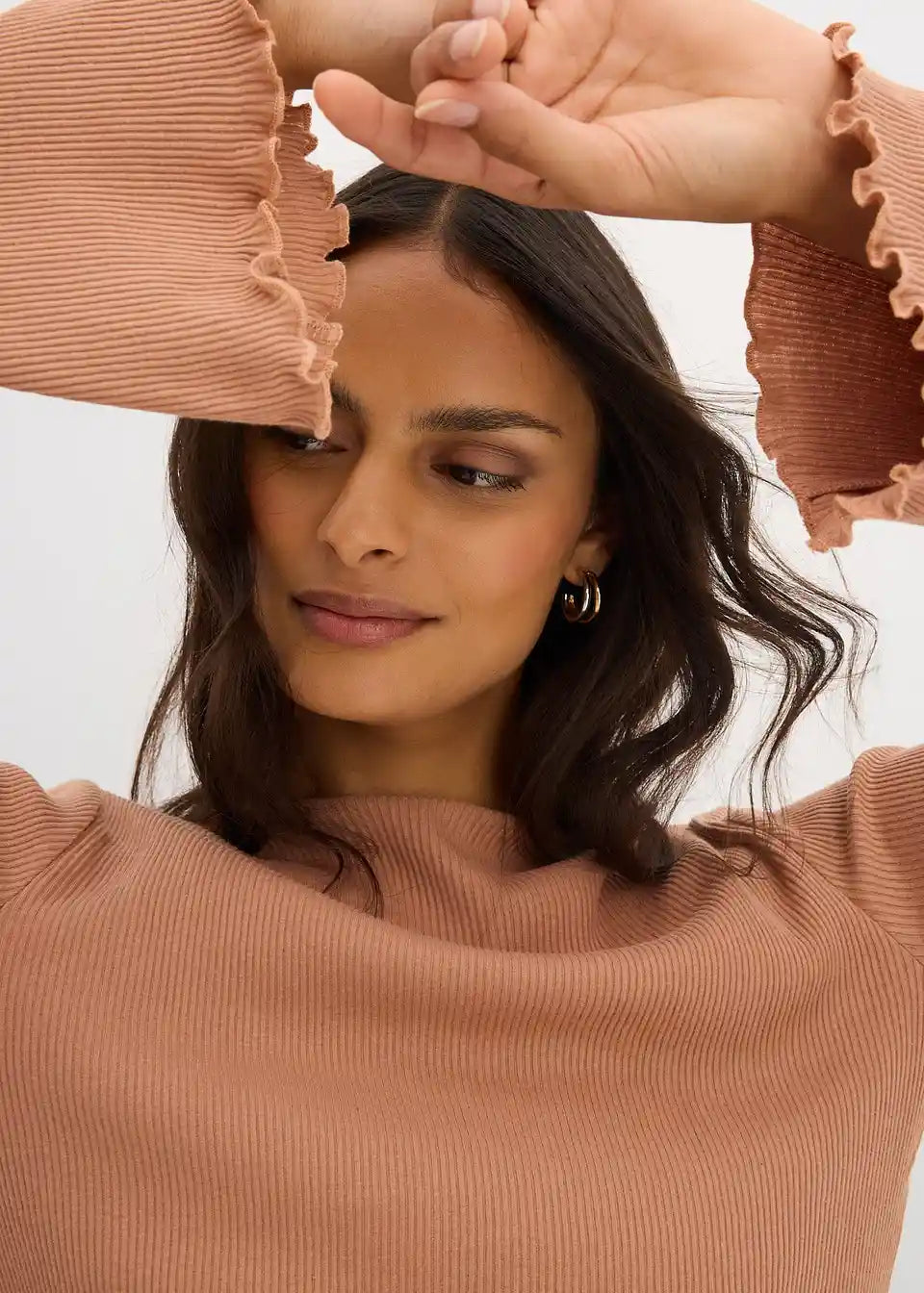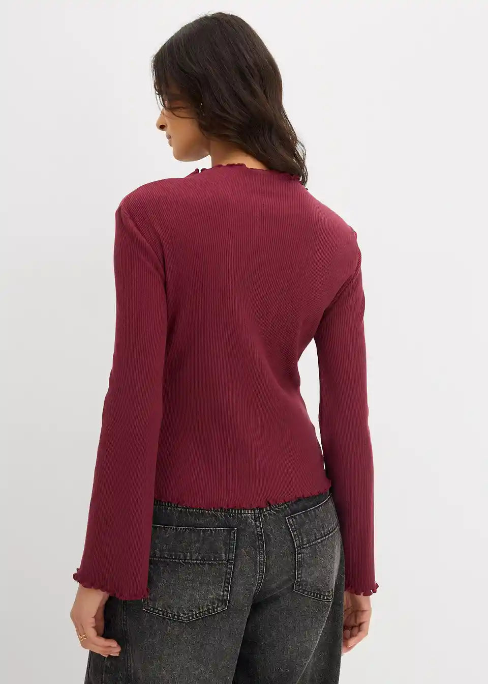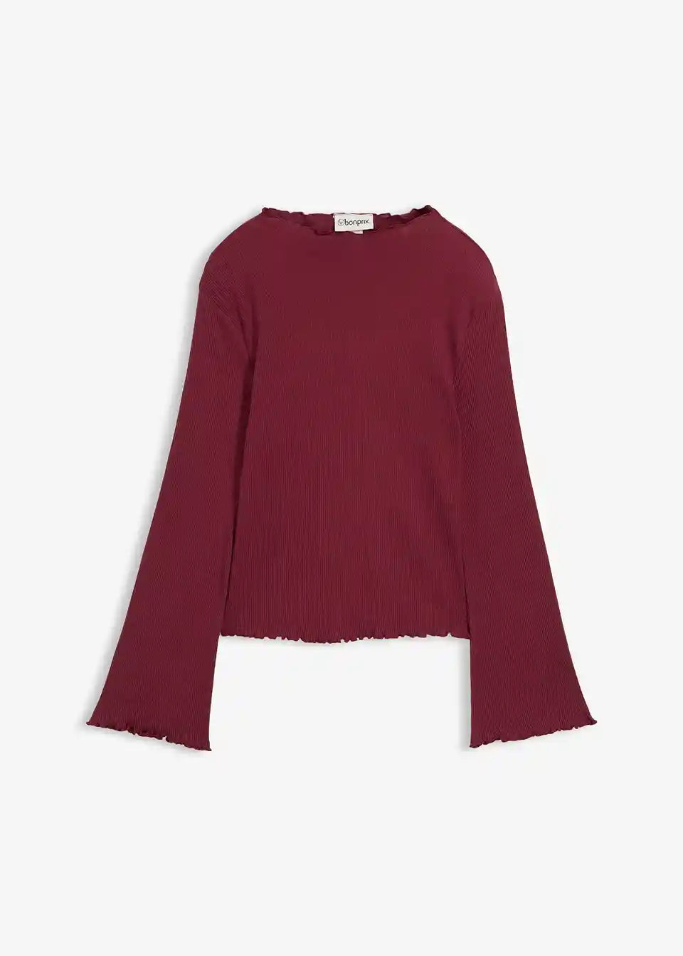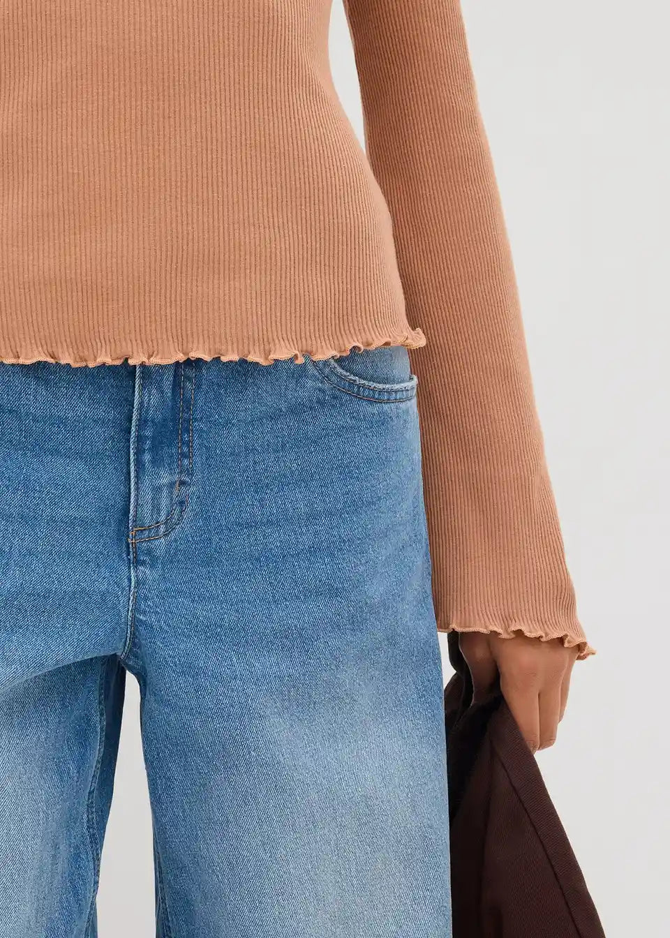 Feines Rippshirt aus reiner Baumwolle mit Trompetenärmeln