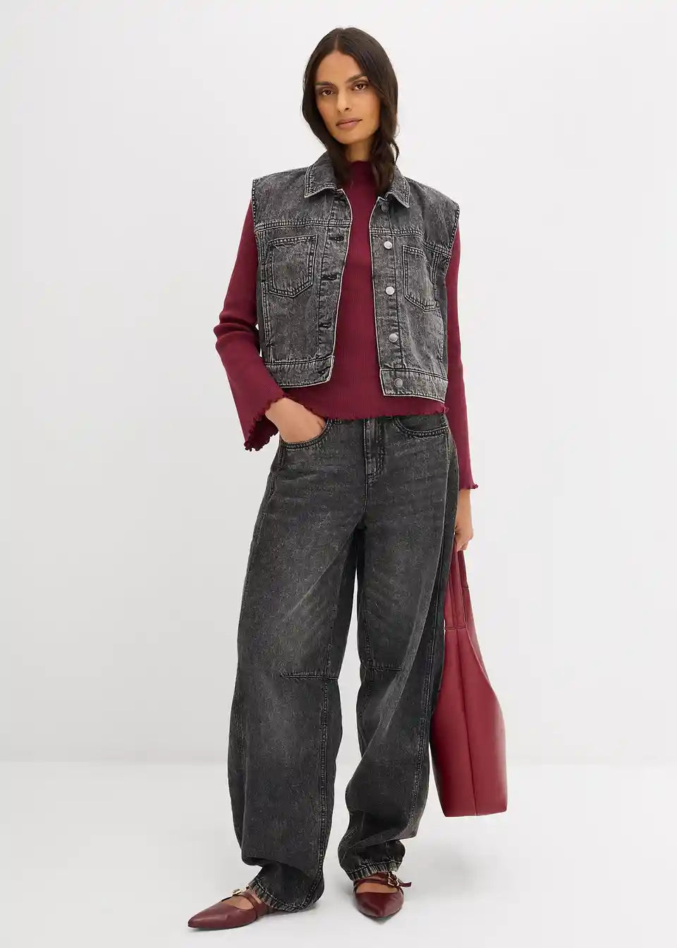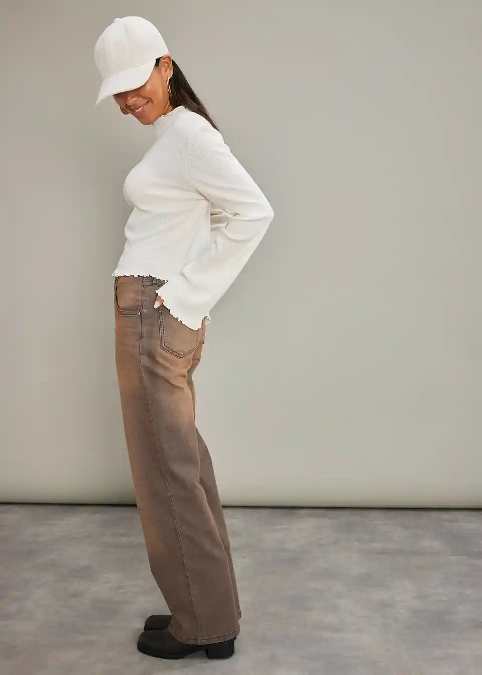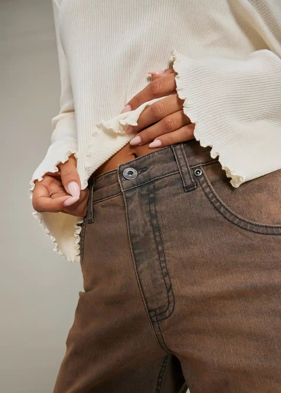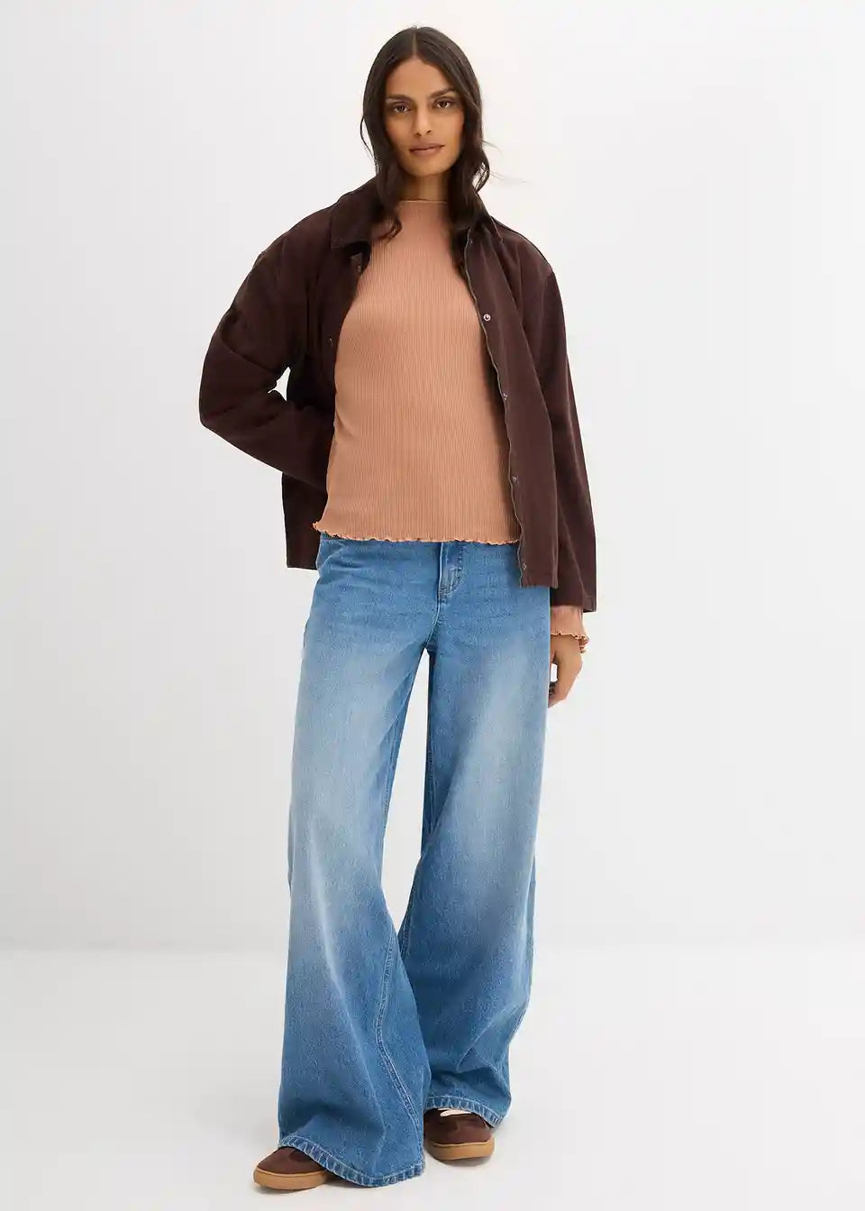 Feines Rippshirt aus reiner Baumwolle mit Trompetenärmeln
