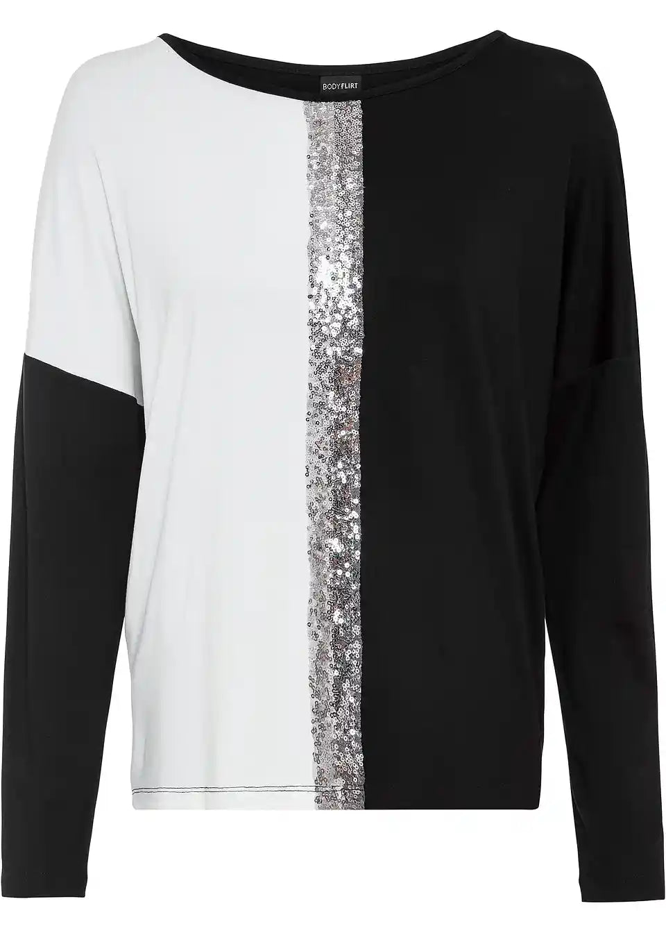 Zweifarbiges Shirt mit Streifen aus Pailletten