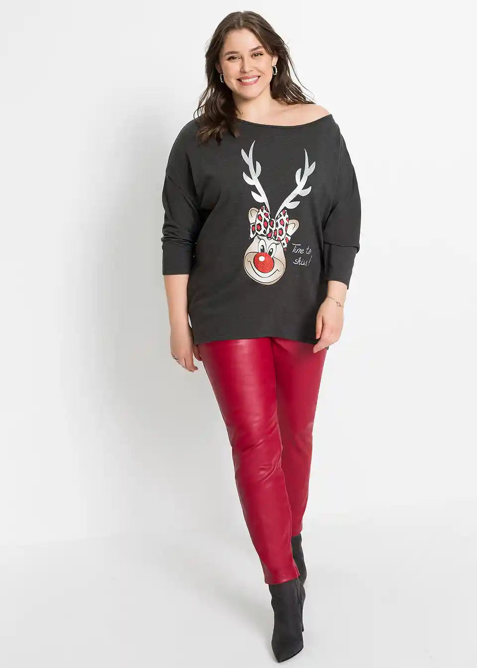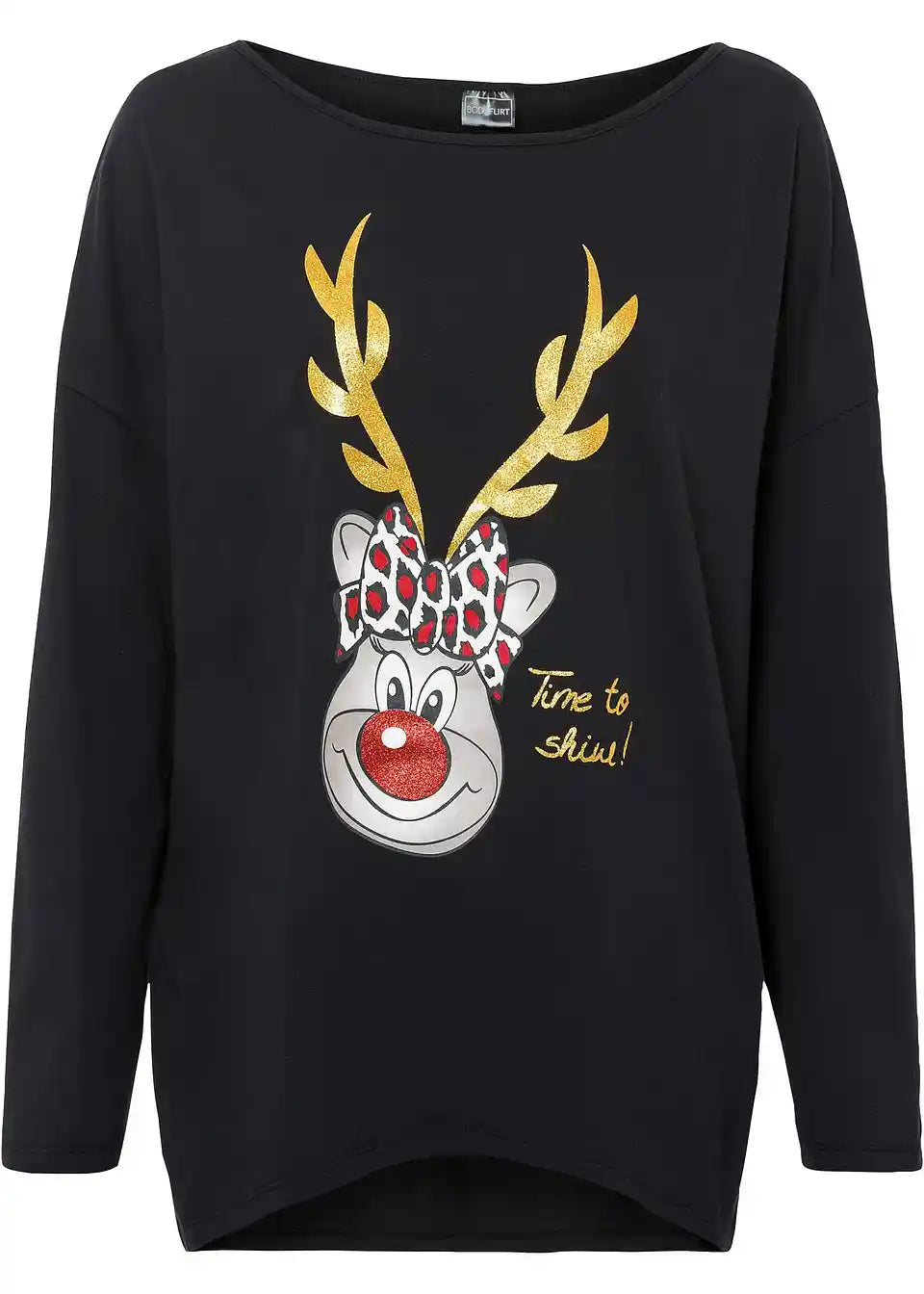 Off-Shoulder-Shirt mit Weihnachtsmotiv