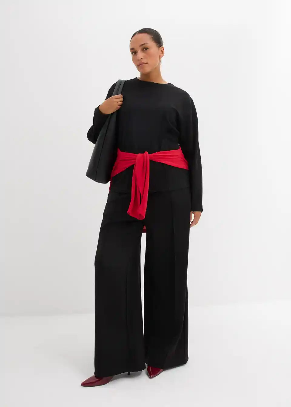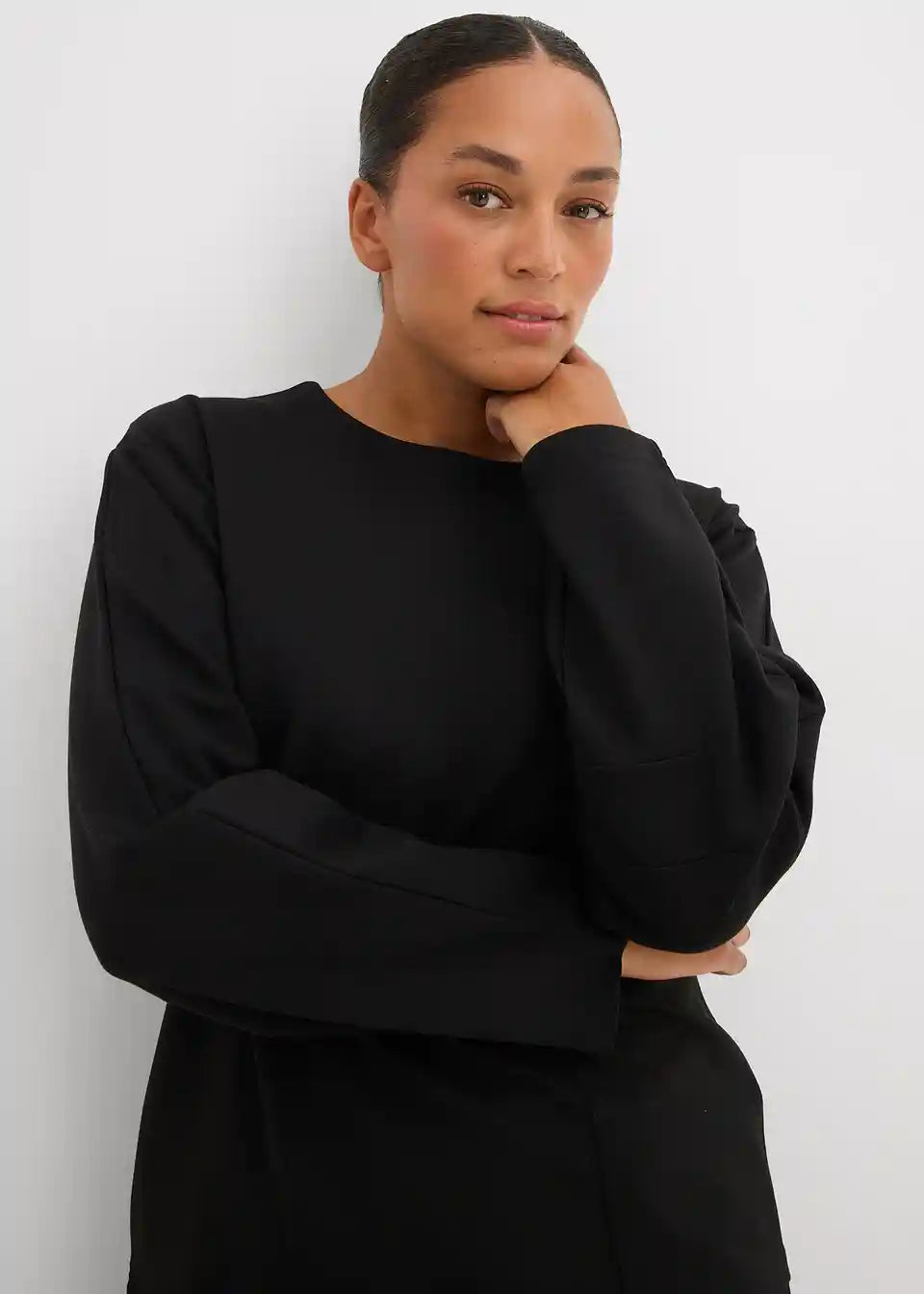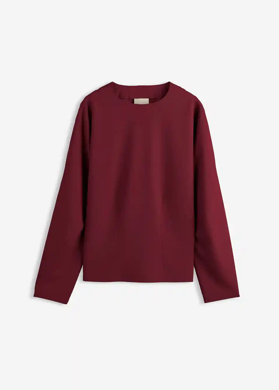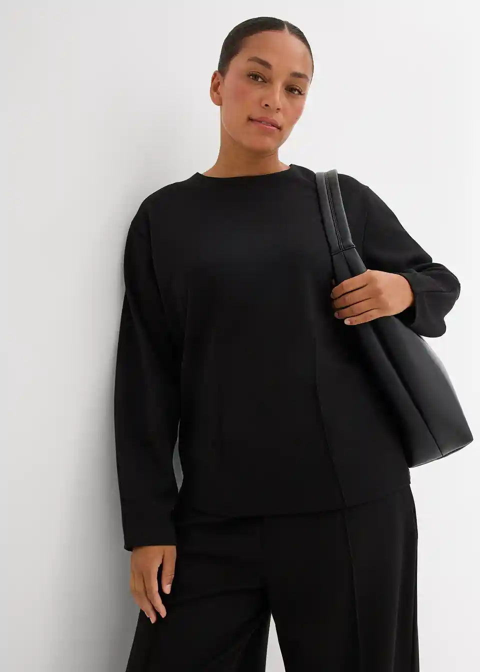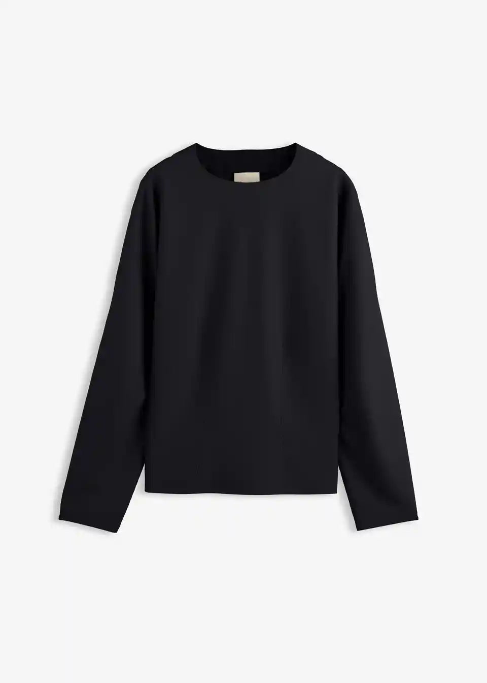 Langarmshirt aus Punto die Roma mit Rundhalsausschnitt sowie Abnähern vorne und an den Ärmeln