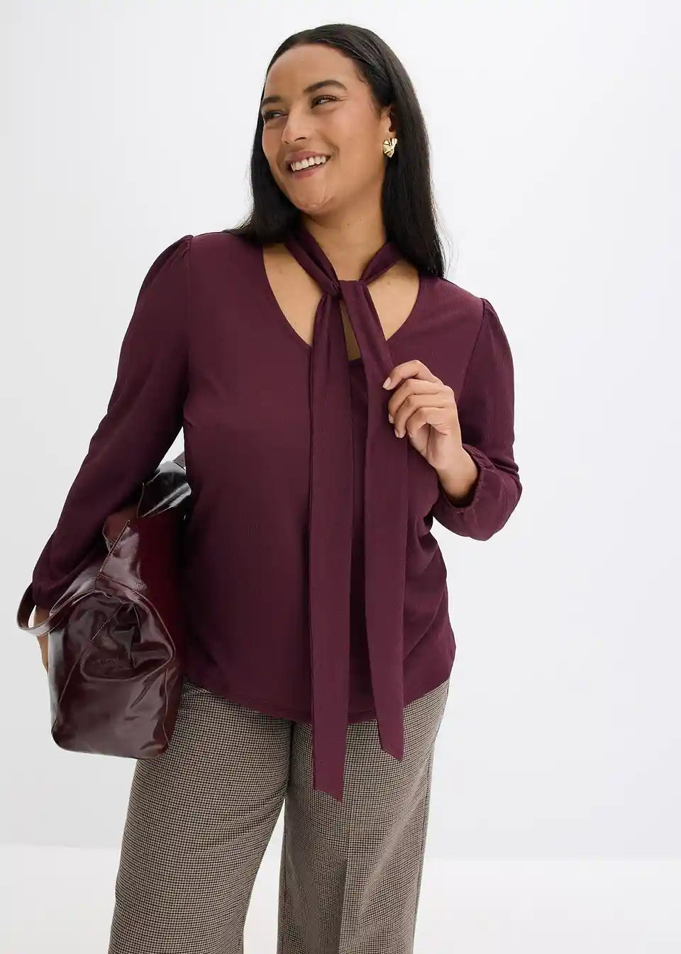 elegantes Struktur-Shirt mit abnehmbarer Schluppe