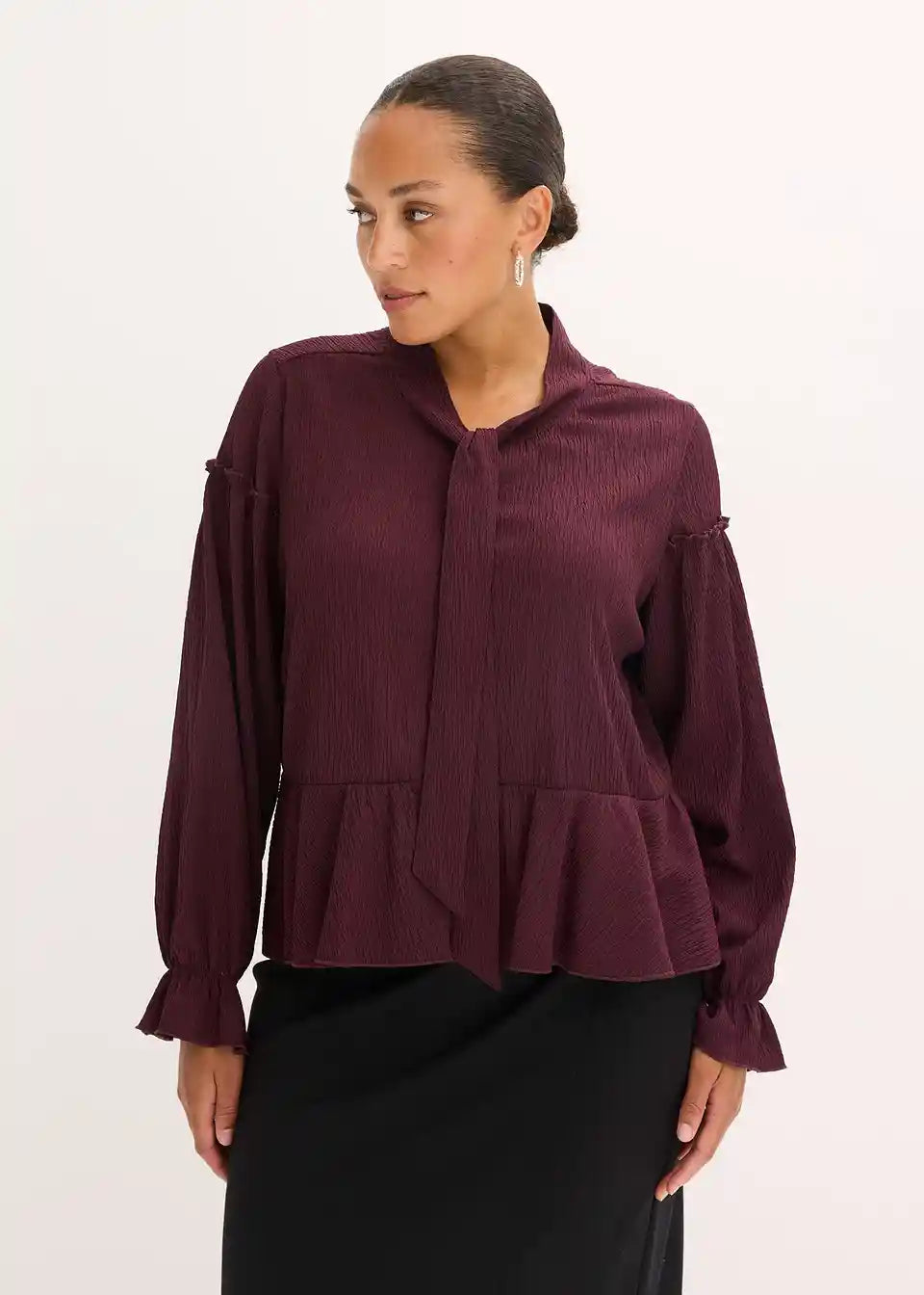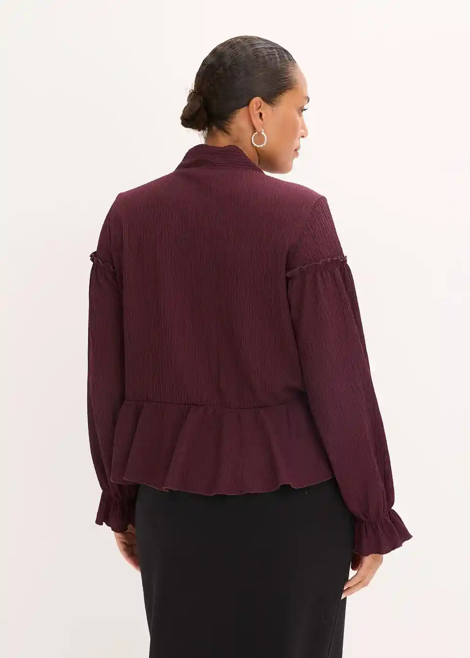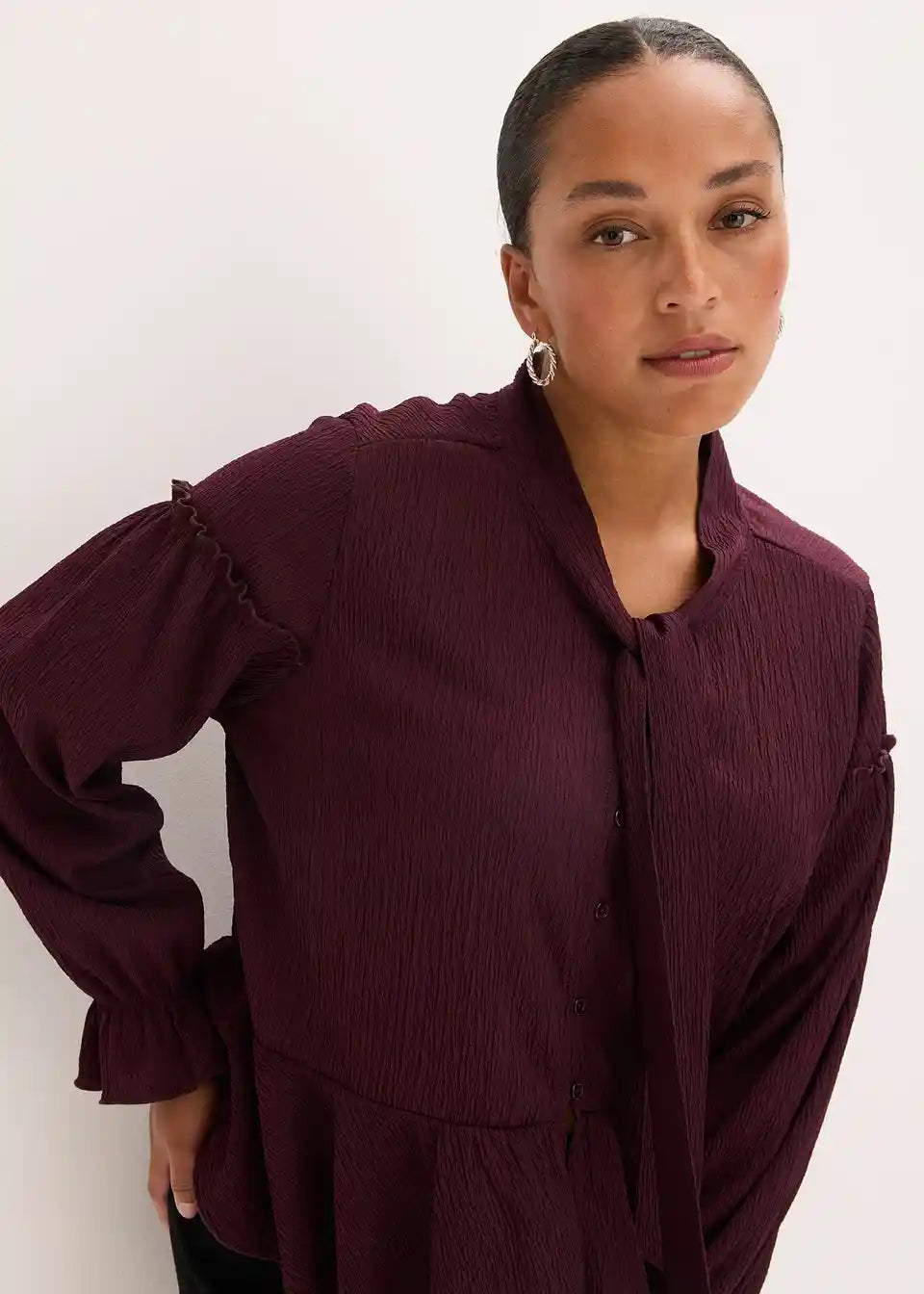 feminines Tunika-Shirt aus strukturiertem Jersey mit Schluppenkragen und Knopfleiste vorne