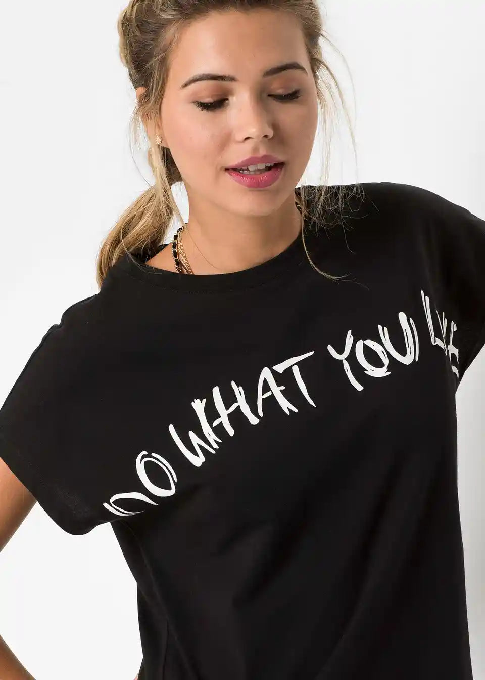 Überschnittene Schultern und eine lockere Passform sorgen bei diesem Shirt für einen Oversize-Effekt. Der coole Schriftzug auf Brusthöhe passt wunderbar zu diesem Design. Angesagte Shorts mit ausgefranstem Saum oder eine Skinny Jeans mit Destroyed-Effekten unterstreichen die Lässigkeit des trendigen Modells. Einen stylishen Kontrast erhält das Oversized-Shirt mit einer Kombi aus Minirock und Holzplateau-Sandalen.