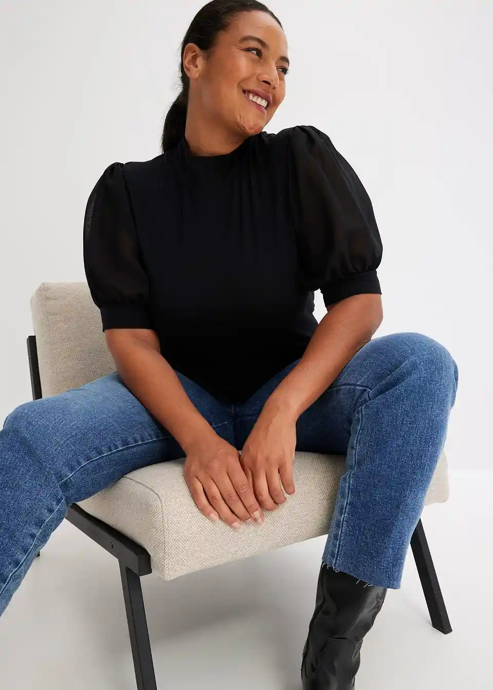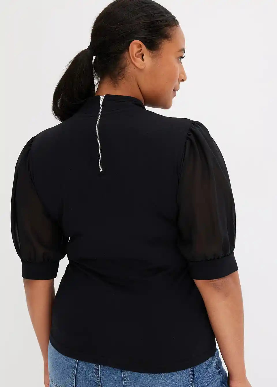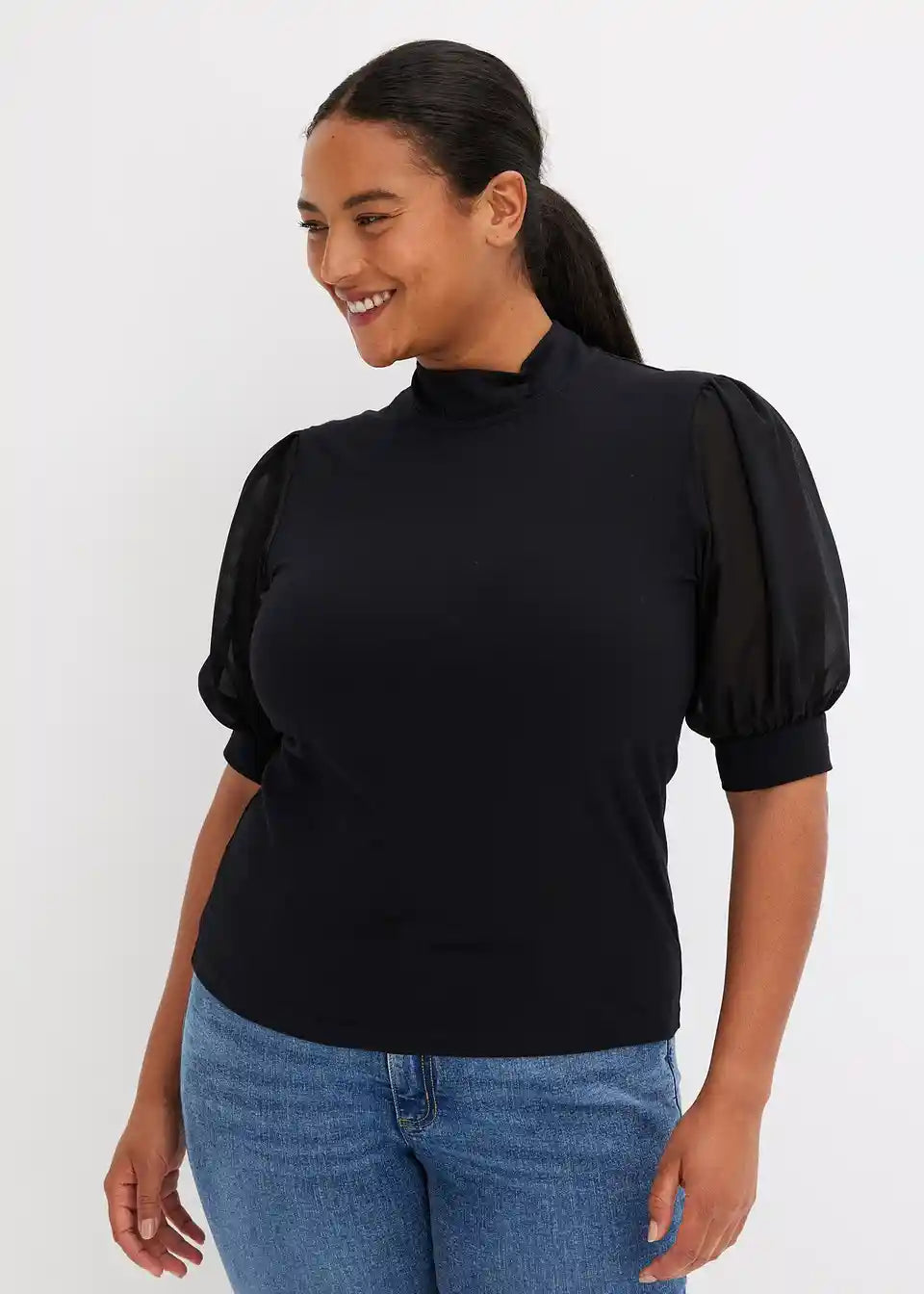 Modern und Feminin: Shirt mit halblangen Ballon-Ärmel aus Mesh mit Bündchen.
