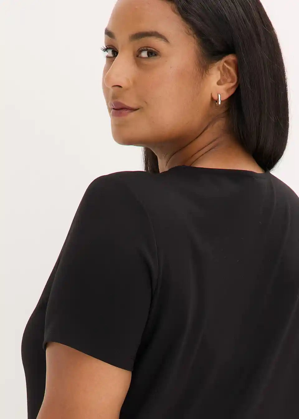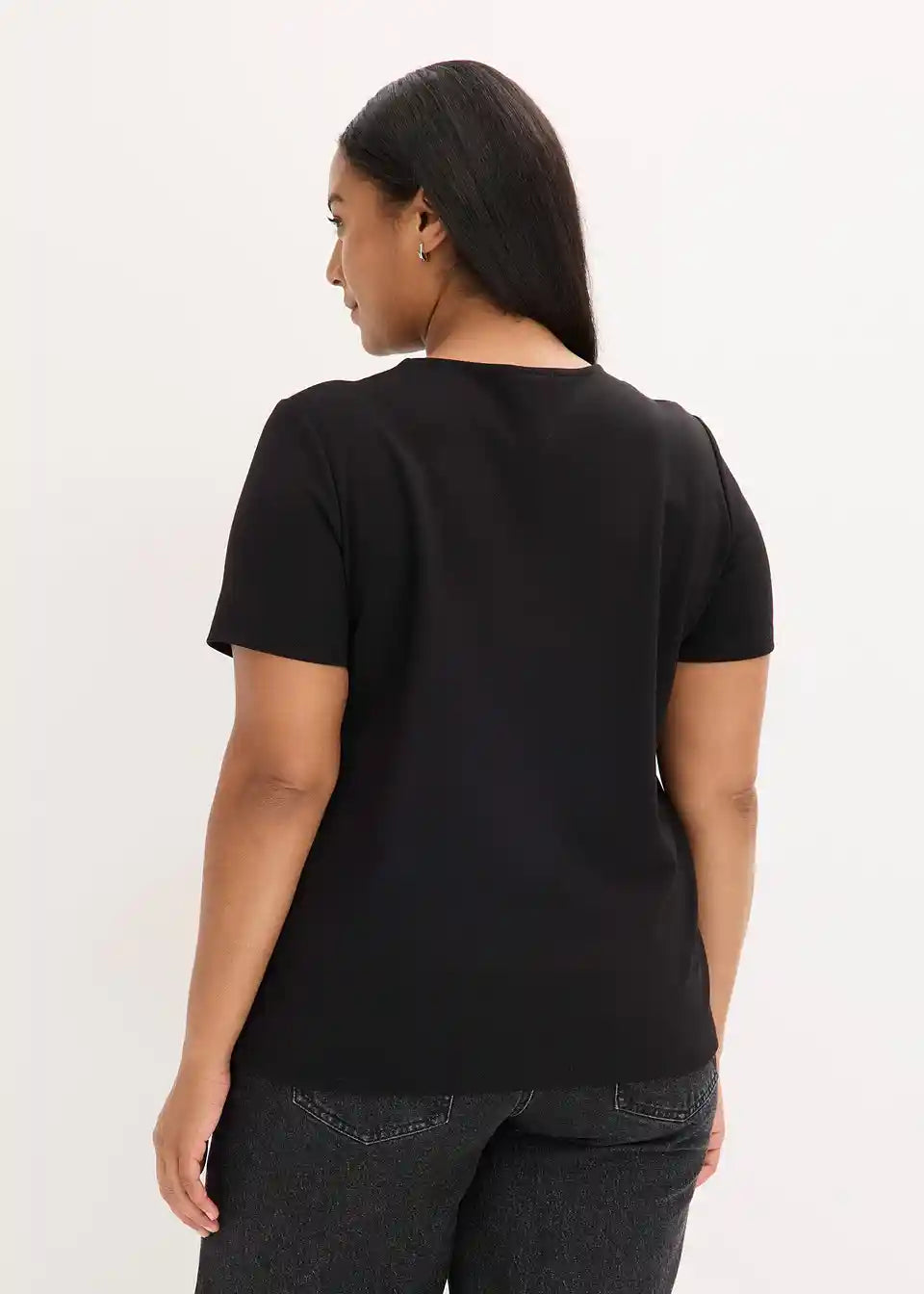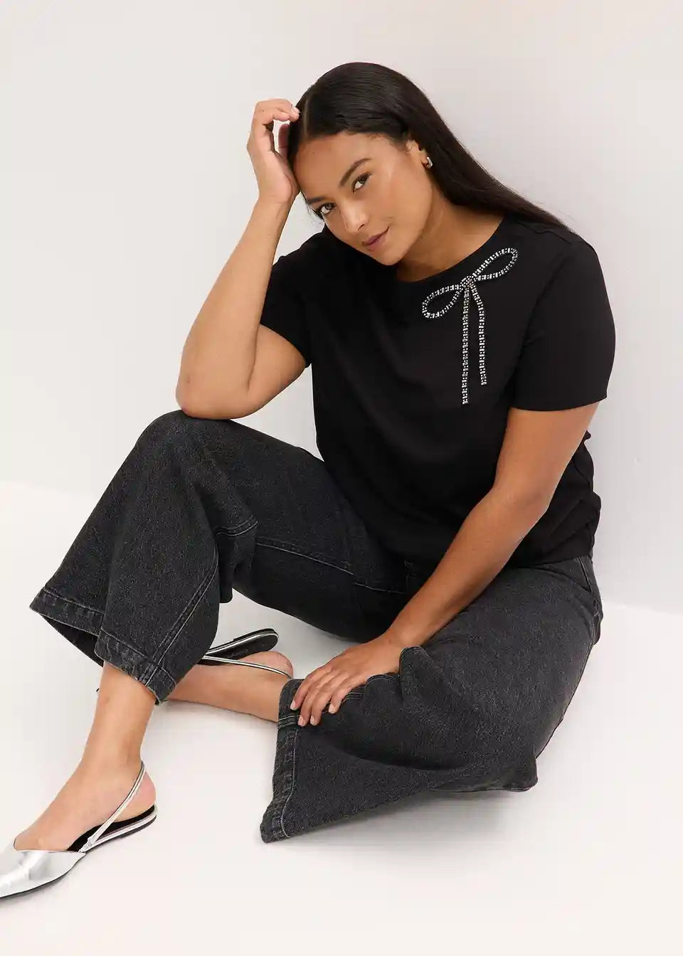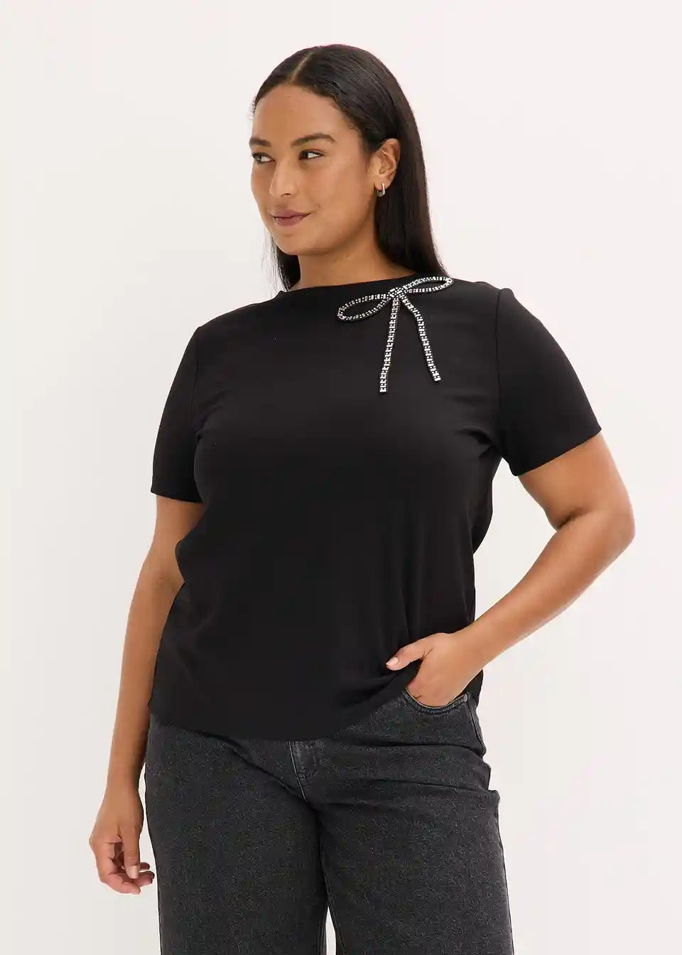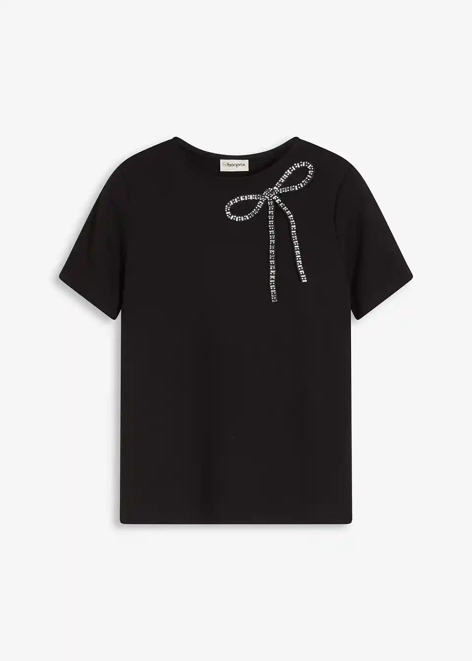 modisches Shirt aus festem Punto-Material mit dekorativer Strass-Schleife vorne