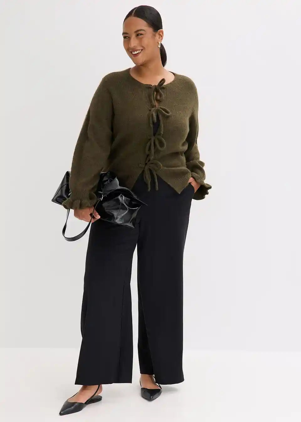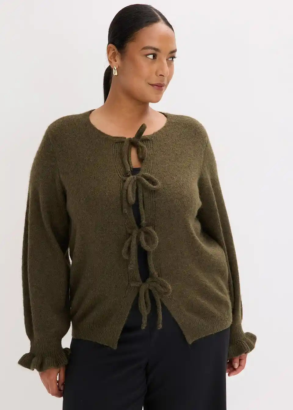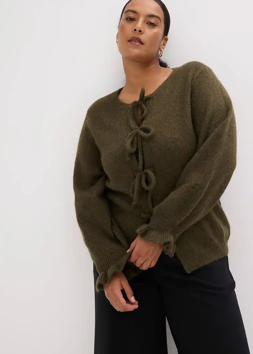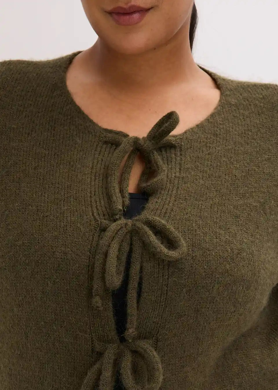 modische Oversize-Strickjacke mit Schleifen-Verschluss vorne