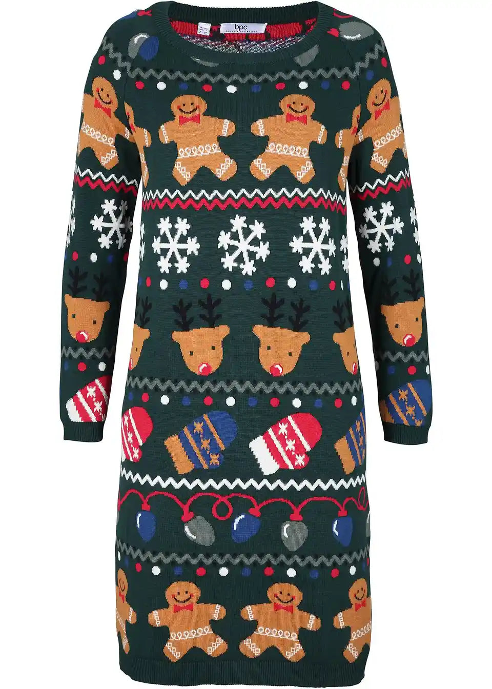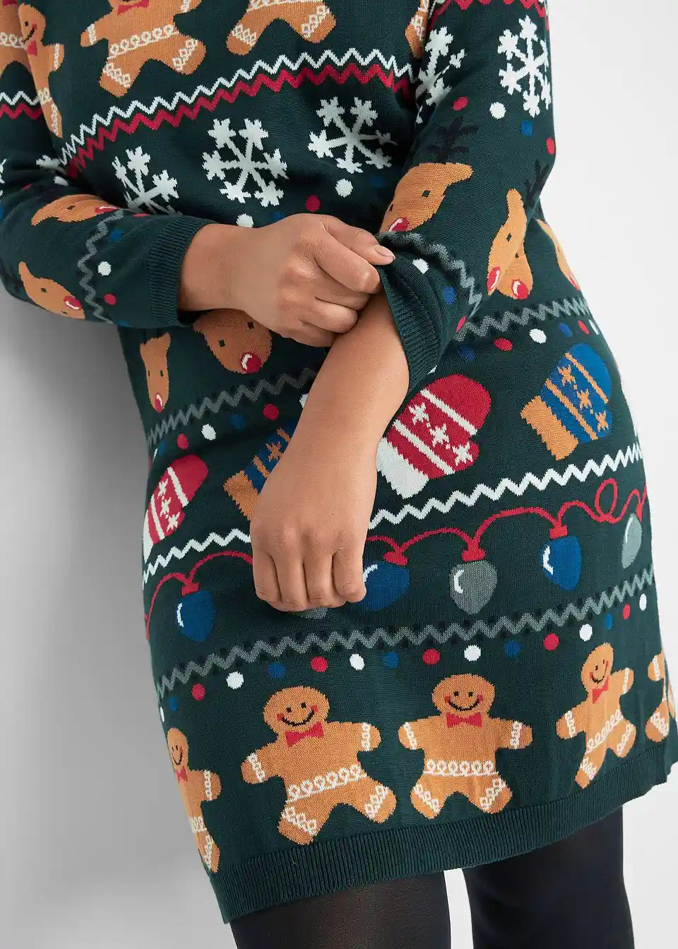 Gemütliches Strickkleid mit bequemen Schnitt und weihnachtlichem Motiv