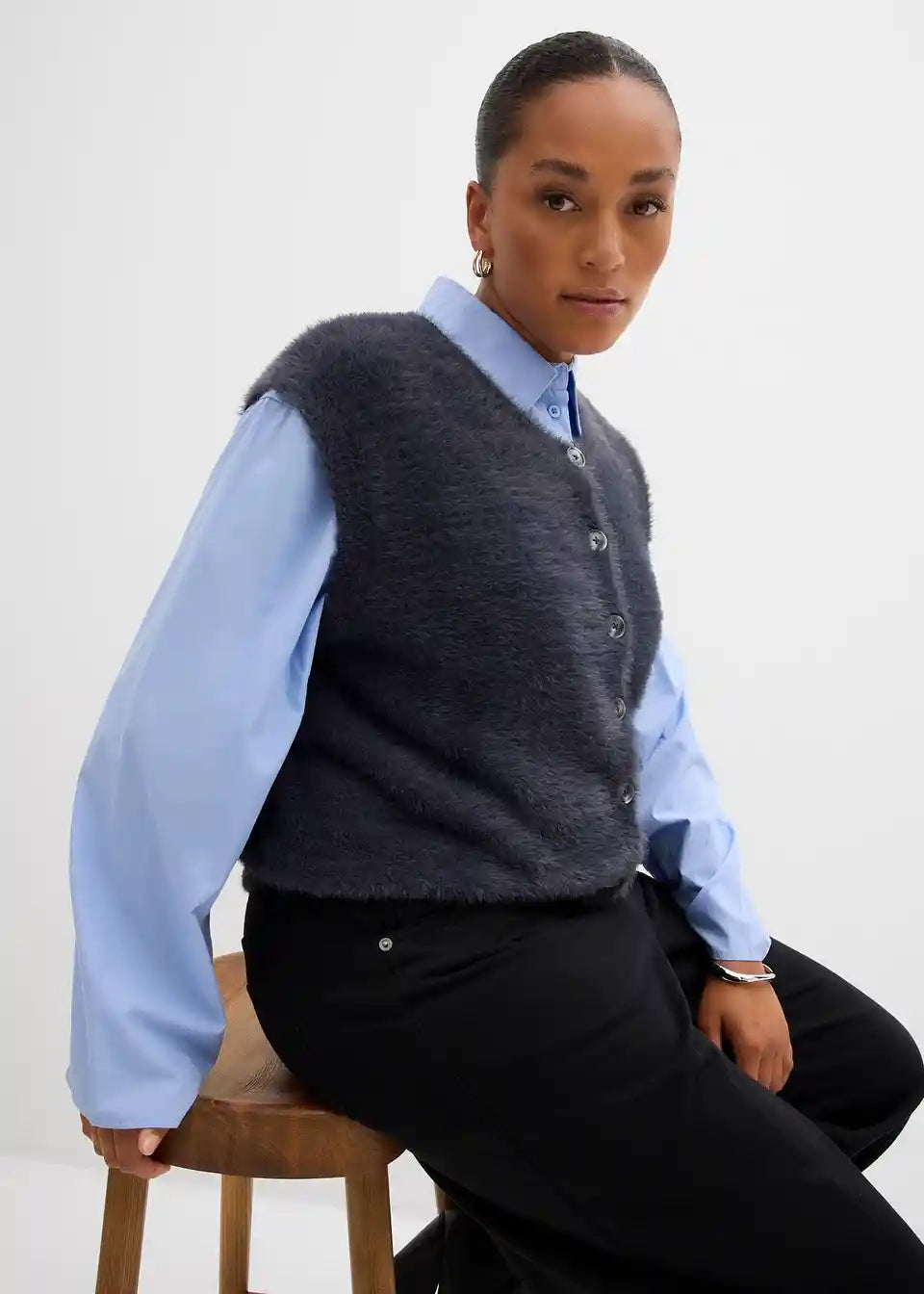 Federgarn-Weste mit Knopfleiste vorne und weicher Haptik