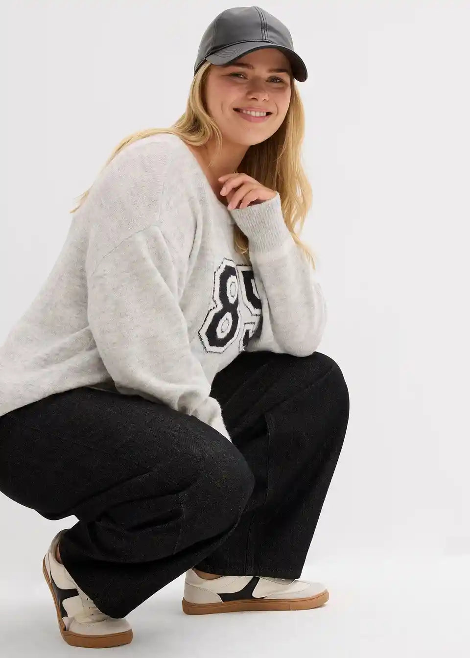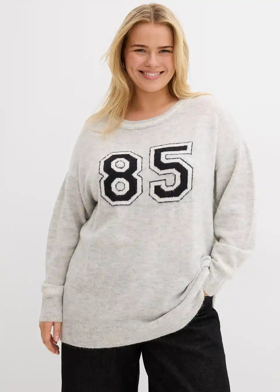 Modischer Oversize-Pullover mit überschnittener Schulter und Schriftzug