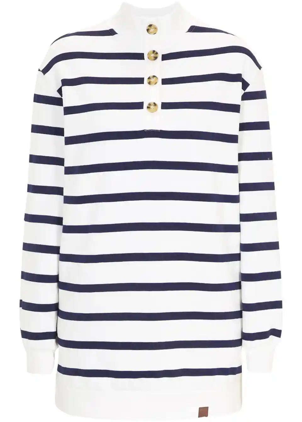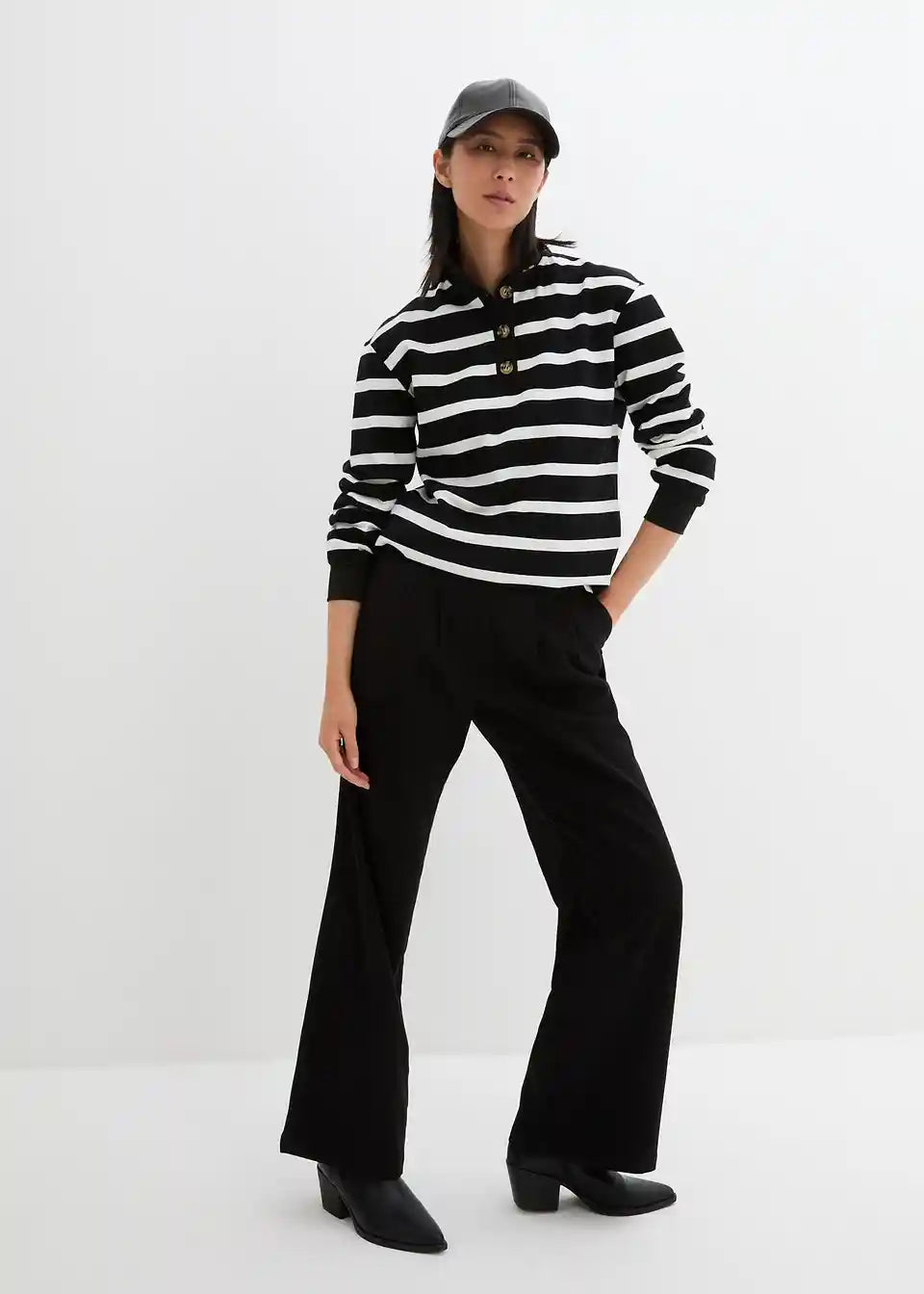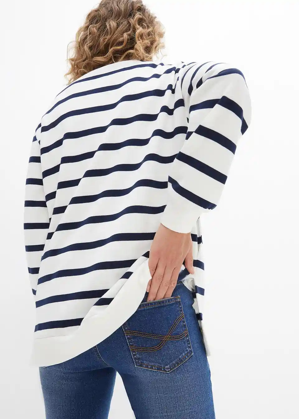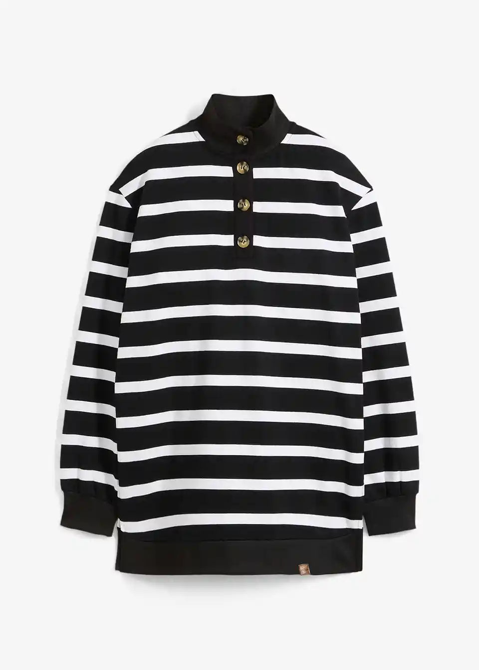 Lockeres Long-Sweatshirt mit Troyer-Kragen und Knöpfen
