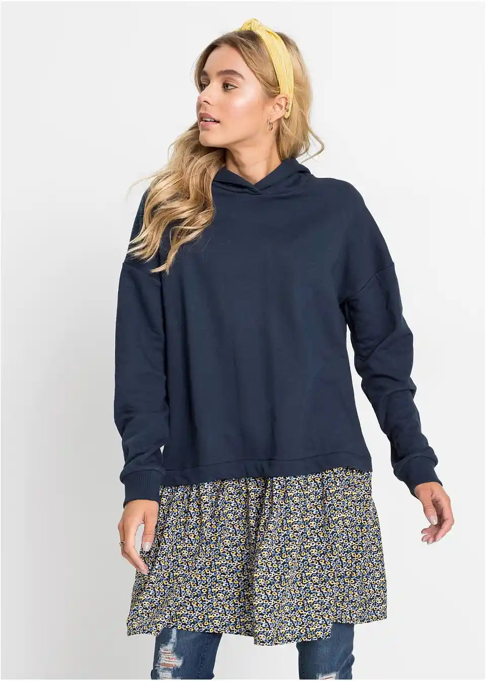 Lässiges Sweatkleid in 2-1 Optik mit Kapuze