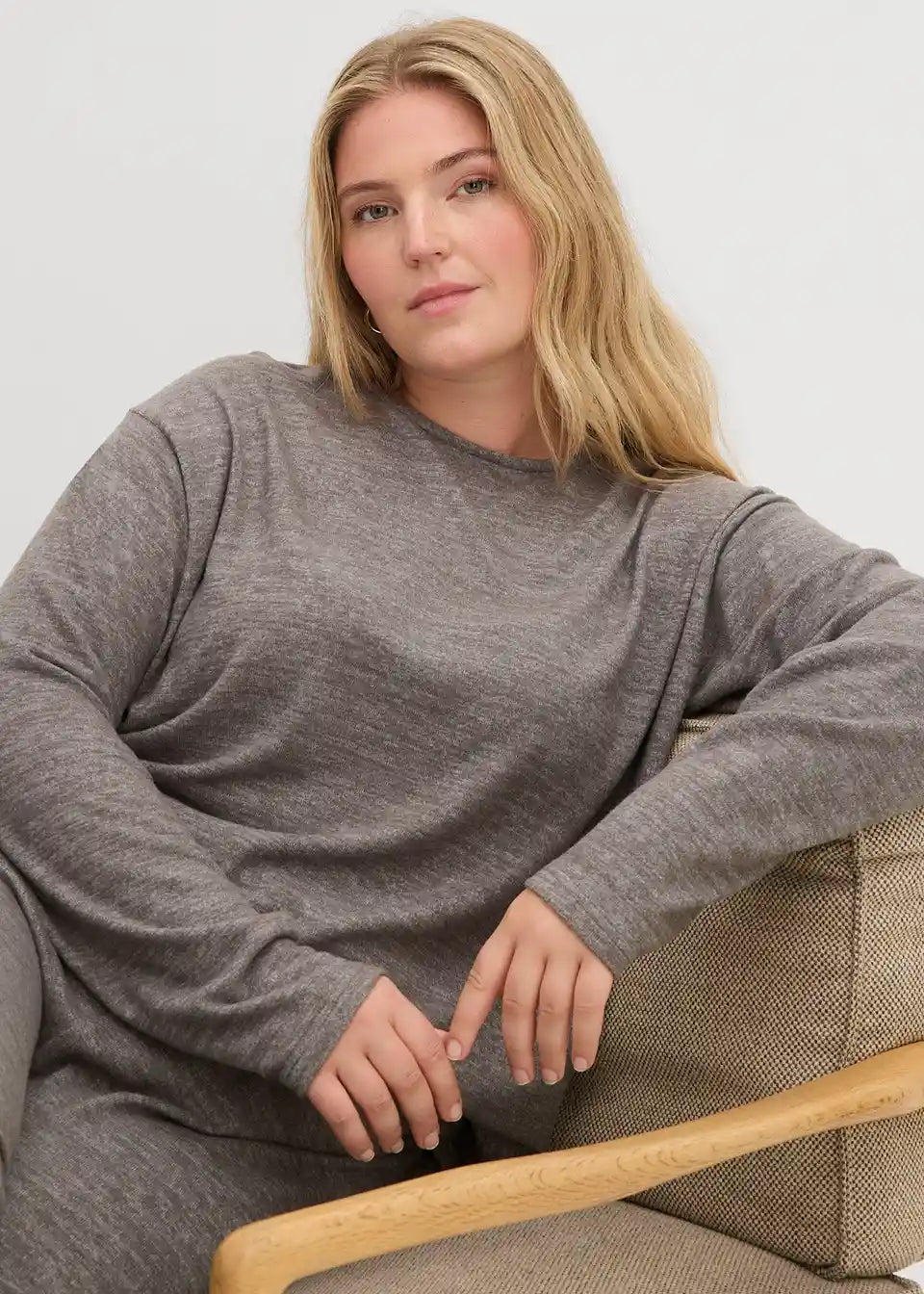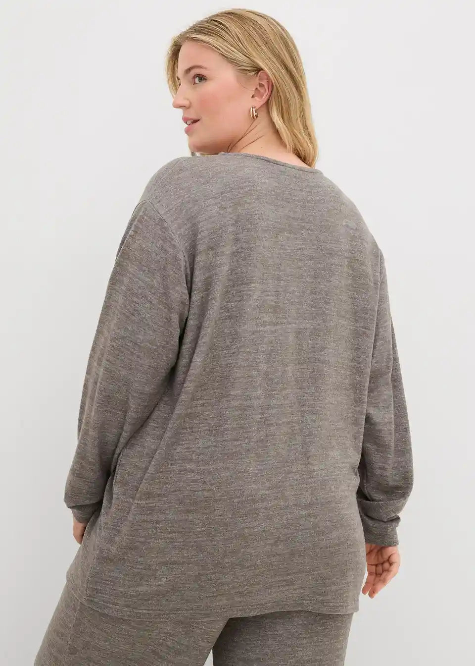 Langärmliges Sweatshirt in hüftbedeckender Länge mit überschnittener Schulter. Weite Passform.
