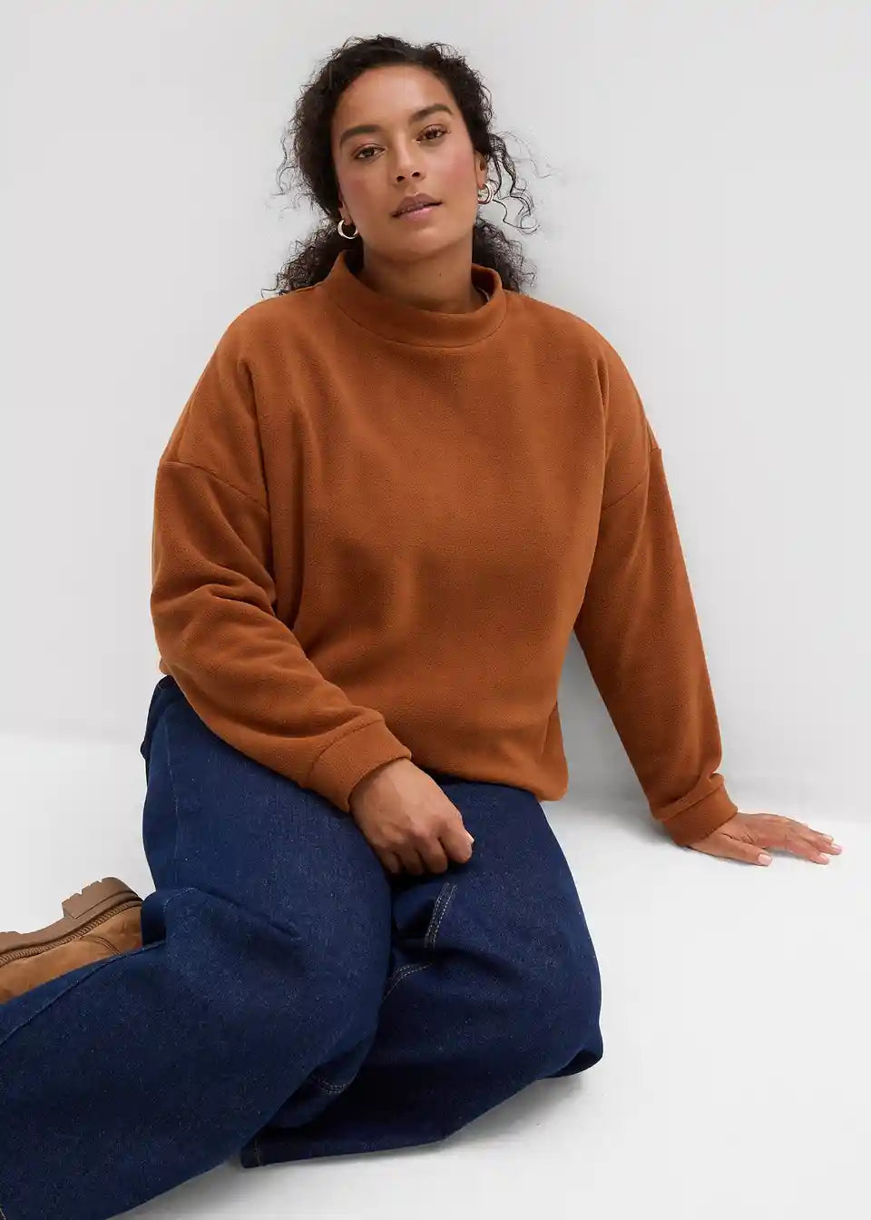 Fleecepullover in weiter Passform. Mit Stehkragen und überschnittener Schulter.